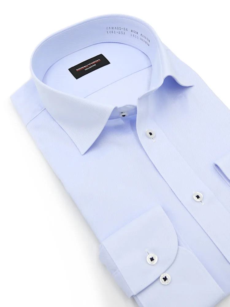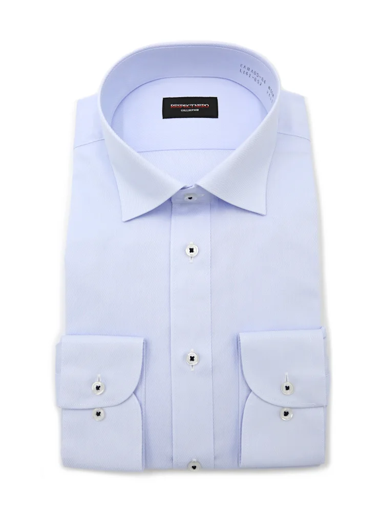 【形態安定】長袖 ワイシャツ セミワイドカラー ツイル柄【スリム】【フレッシャーズ対応】nero 通年(S.ブルー)