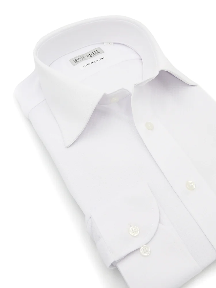 【完全ノーアイロン】長袖 アイシャツ セミワイドカラー スクエア柄【フレッシャーズ対応】ワイシャツ i-shirt 通年(ホワイト)