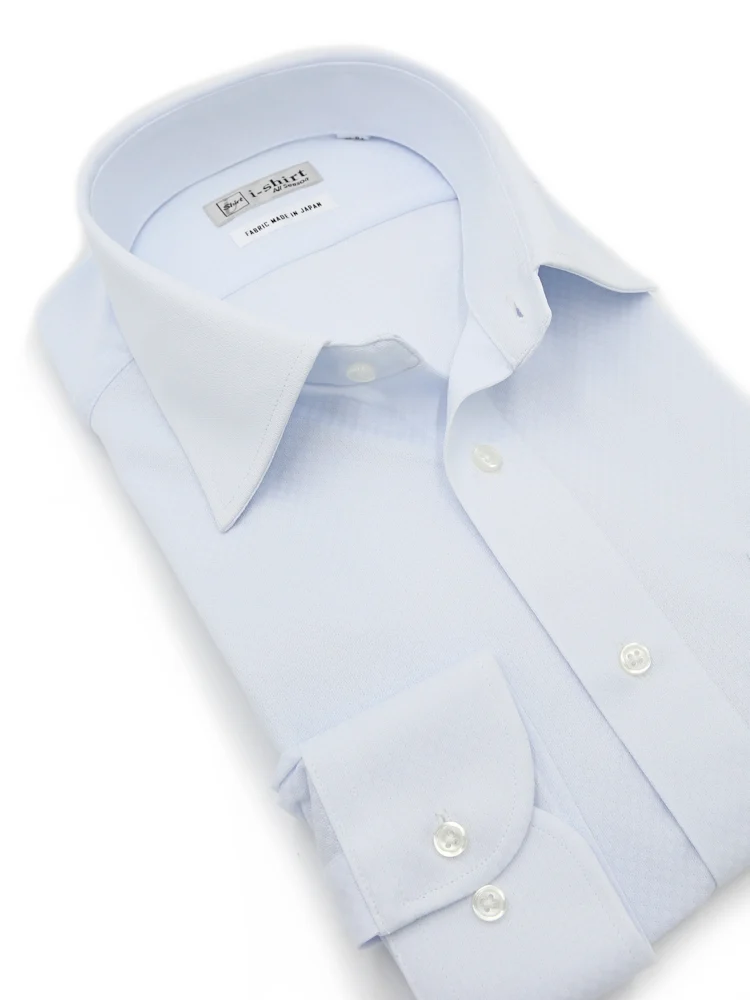 【完全ノーアイロン】長袖アイシャツセミワイドヘリンボンワイシャツi-shirt通年