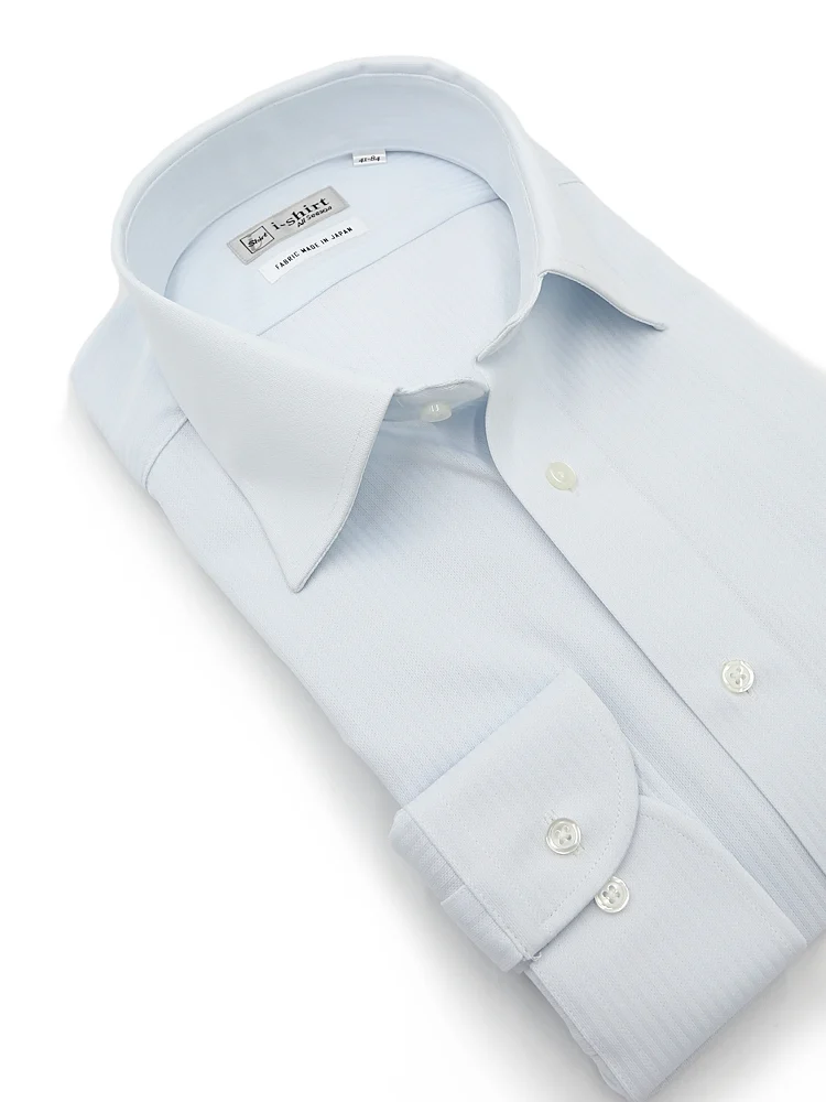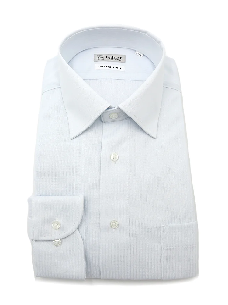 【完全ノーアイロン】長袖 アイシャツ セミワイドカラー シャドウストライプ柄【フレッシャーズ対応】ワイシャツ i-shirt 通年(サックス)