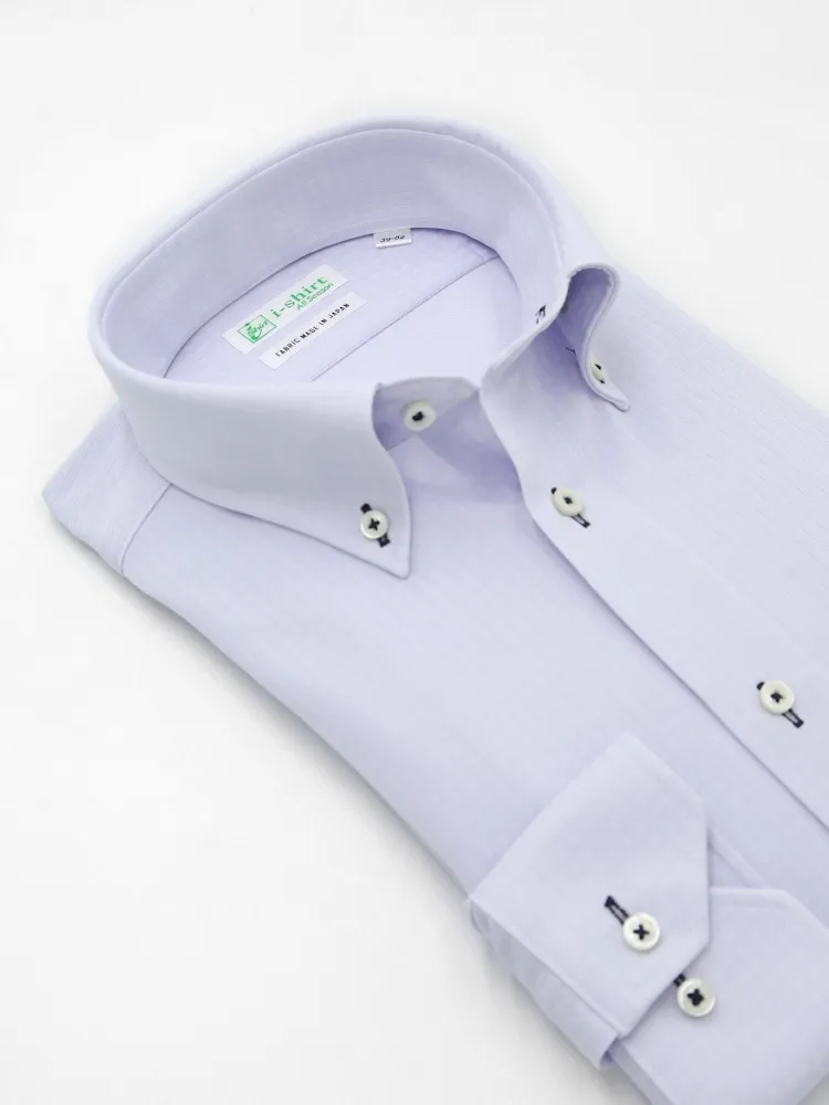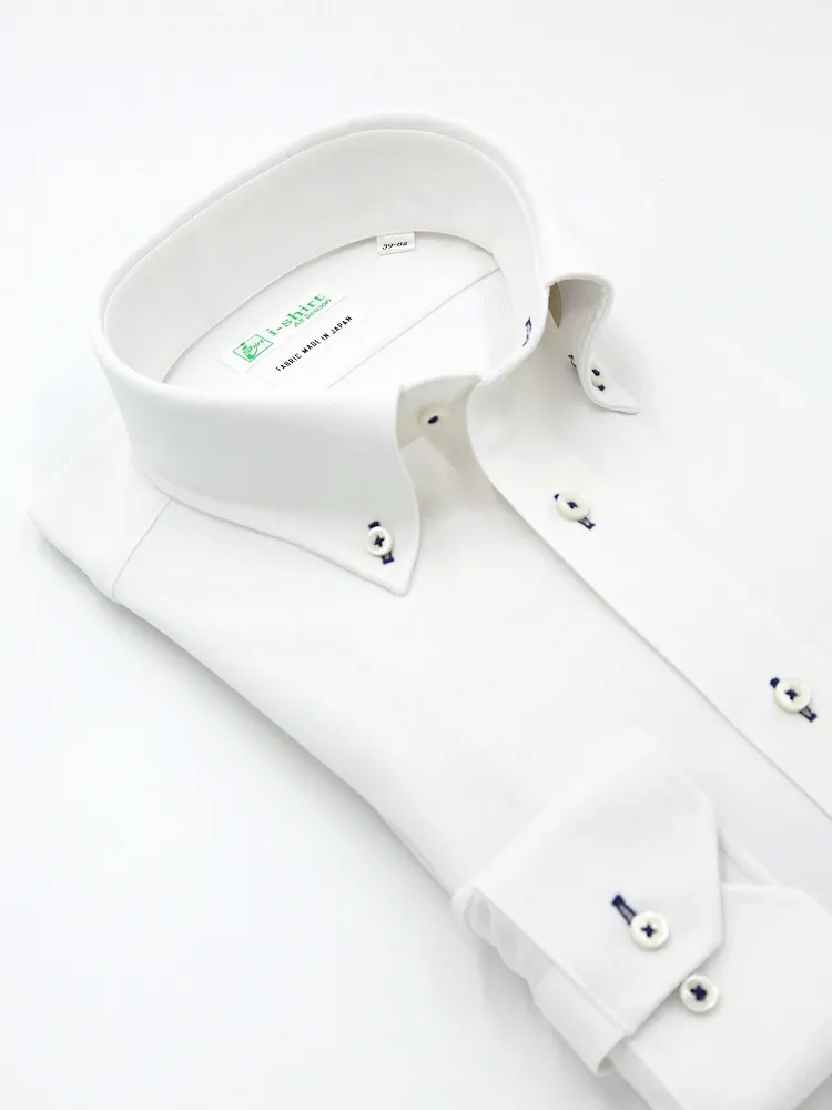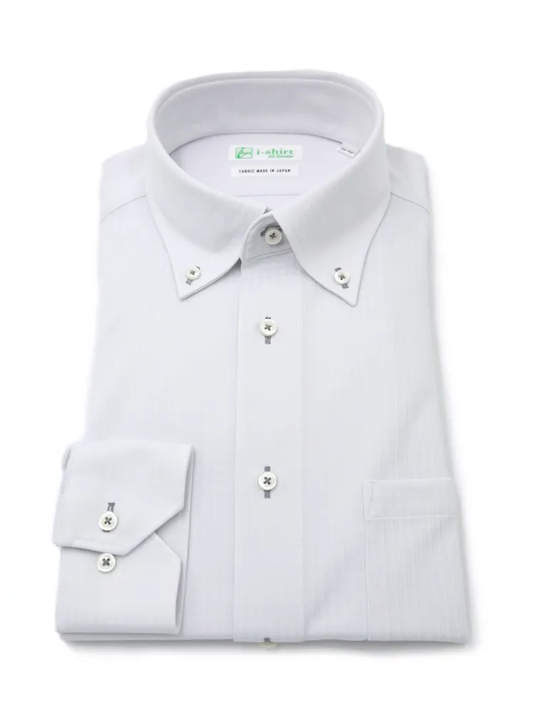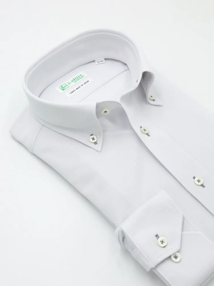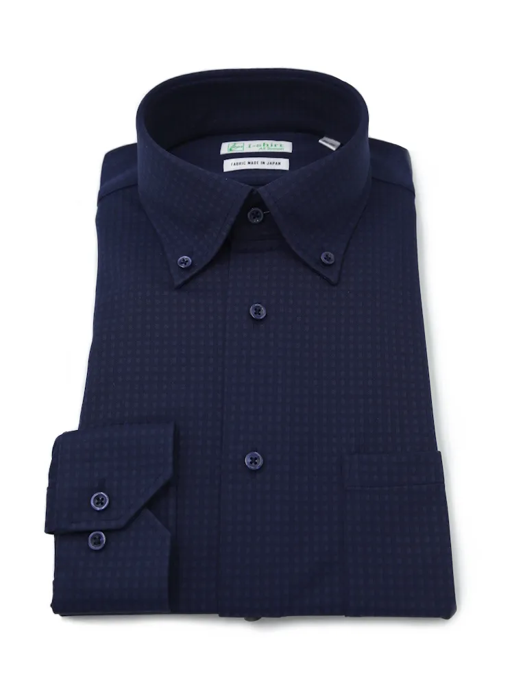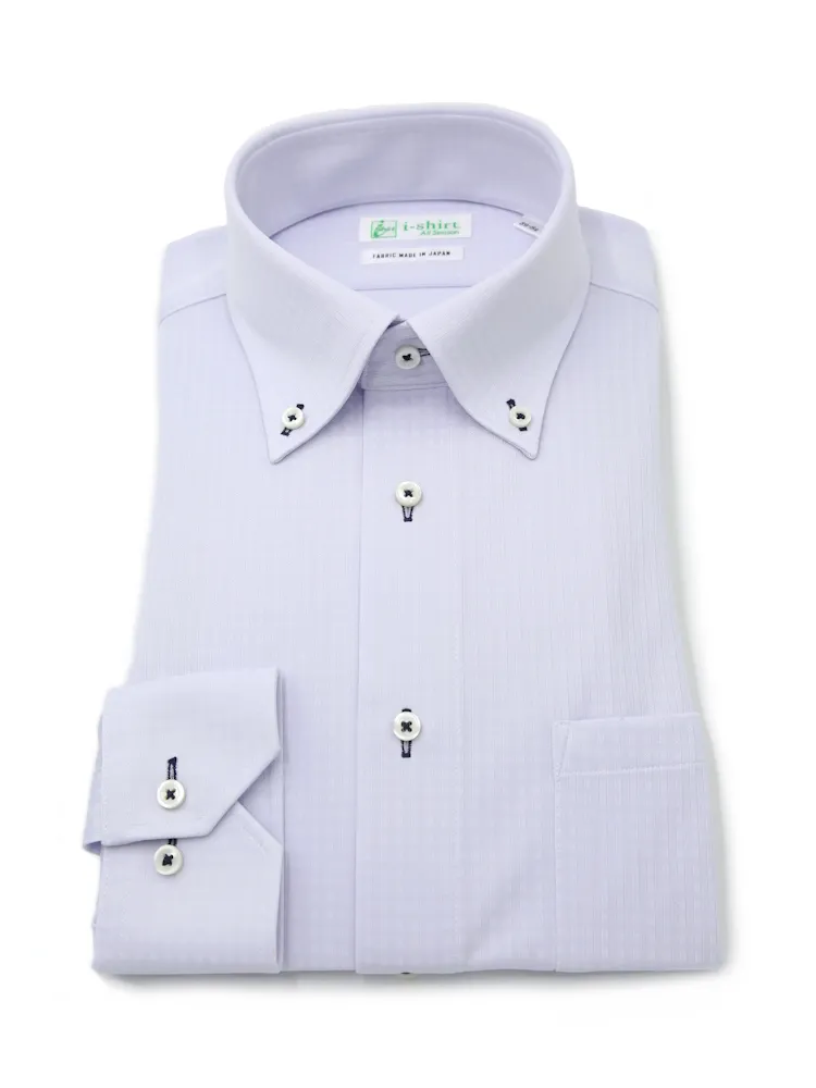【形態安定】アイシャツ長袖ワイシャツボタンダウン織柄無地i-shirt通年