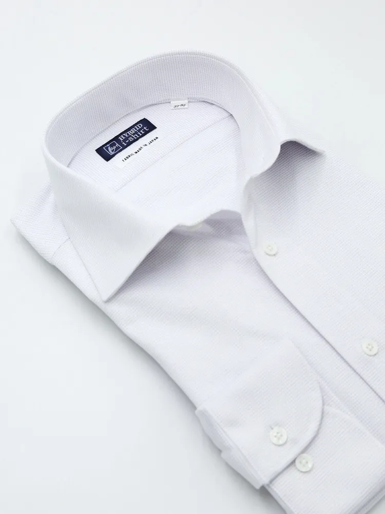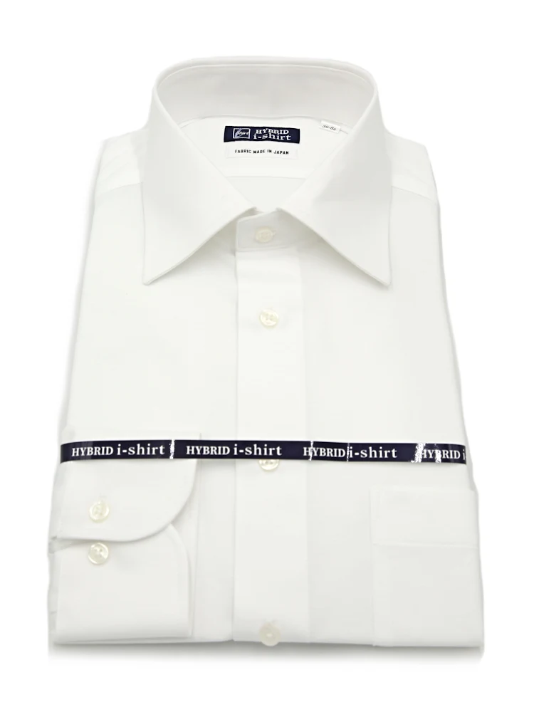 綿素材ワイシャツの風合いを表現した【ハイブリッドアイシャツ】。