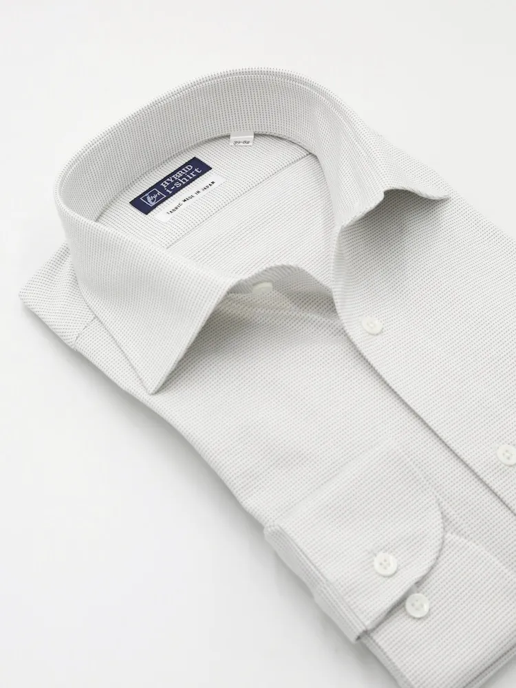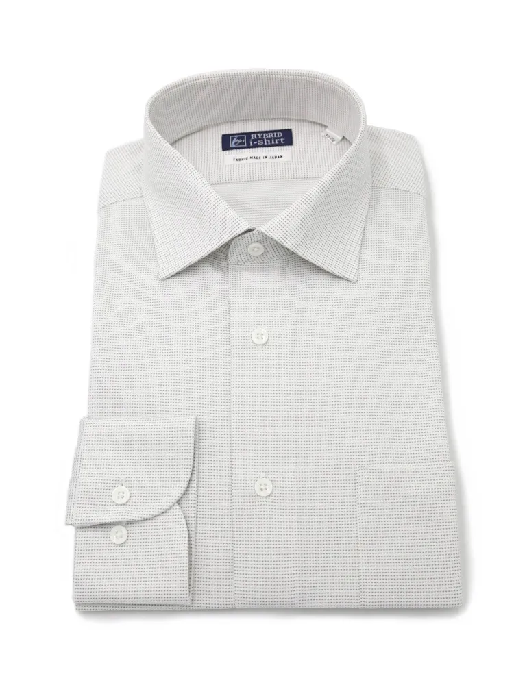 【ハイブリッドアイシャツ】長袖 ワイシャツ セミワイド 綿混素材 形態安定 織柄無地 i-shirt 通年(L.グレー)