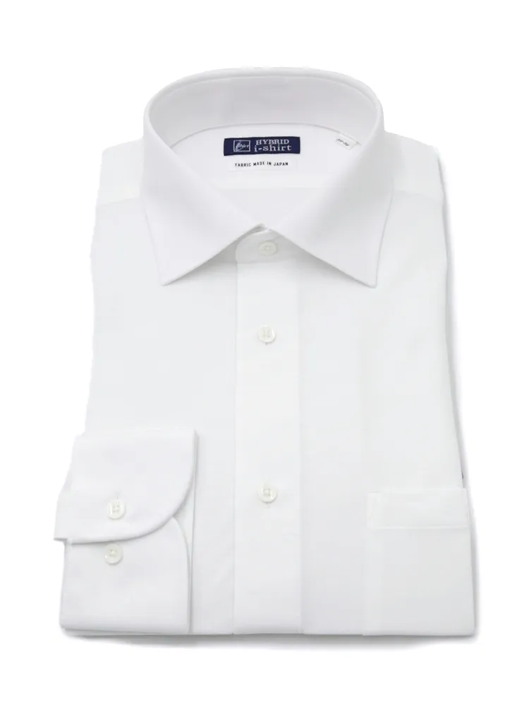 【ハイブリッドアイシャツ】長袖ワイシャツセミワイド綿混素材形態安定無地i-shirt通年