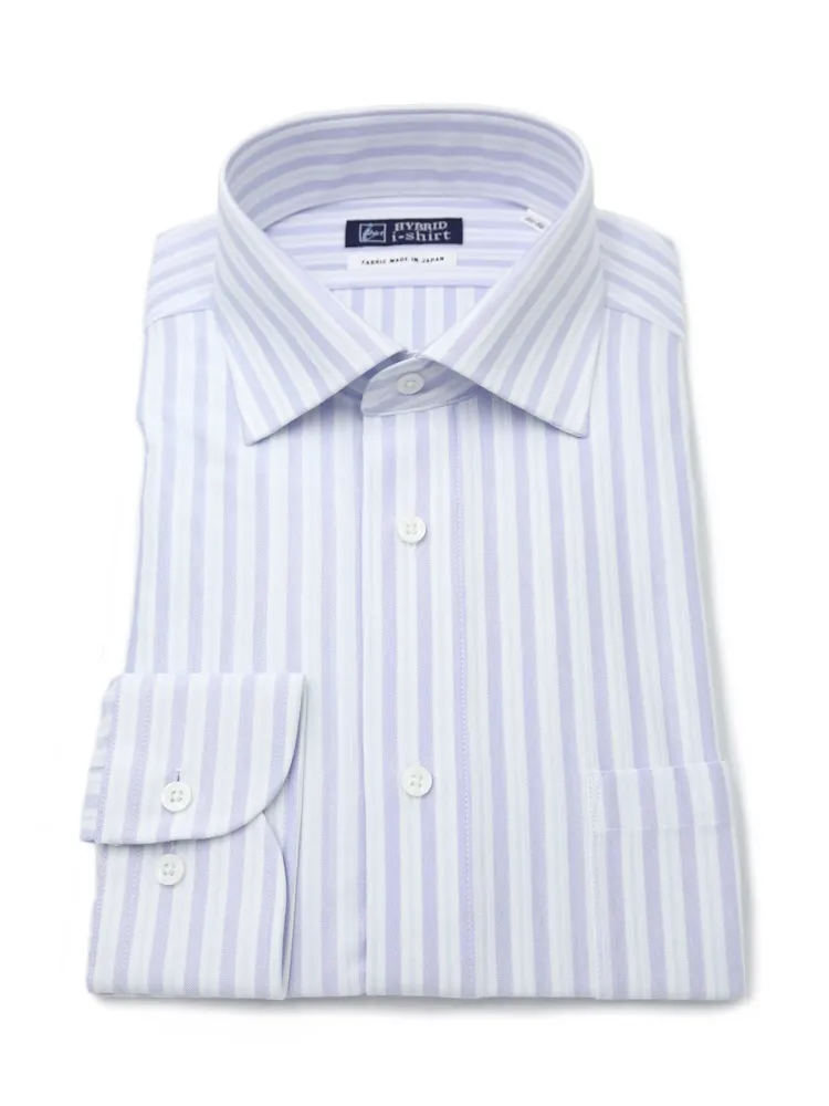 【ハイブリッドアイシャツ】長袖ワイシャツボタンダウン綿混素材形態安定ピンストライプi-shirt通年