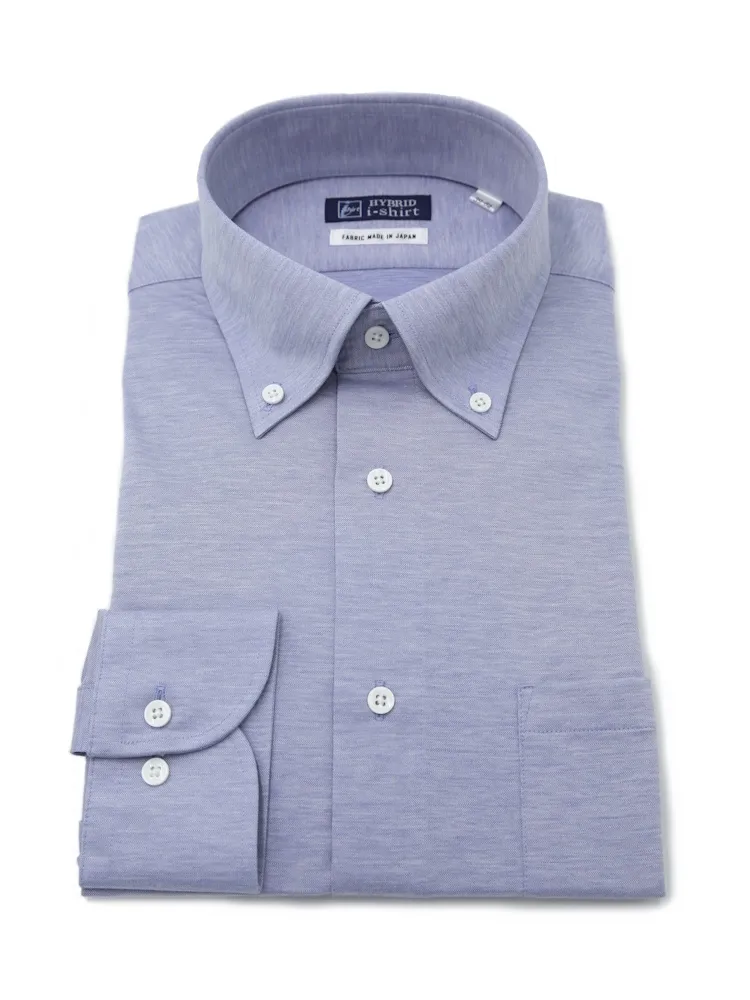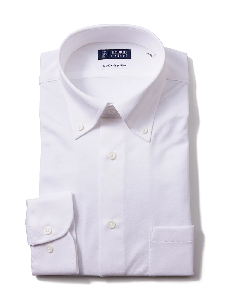 【ハイブリッドアイシャツ】長袖ワイシャツボタンダウン綿混素材形態安定無地i-shirt通年