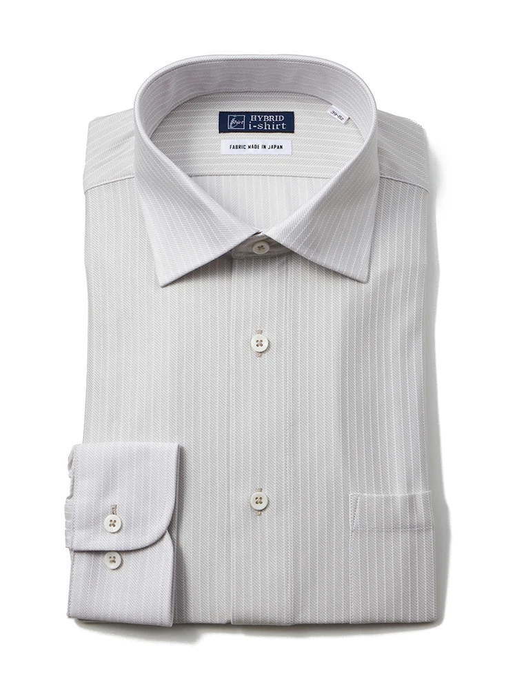 綿素材ワイシャツの風合いを表現した【ハイブリッドアイシャツ】。