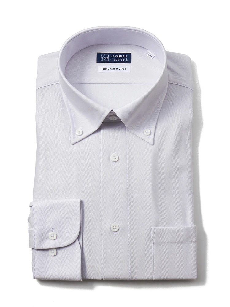 【ハイブリッドアイシャツ】長袖ワイシャツボタンダウン綿混素材形態安定ヘリンボンi-shirt通年