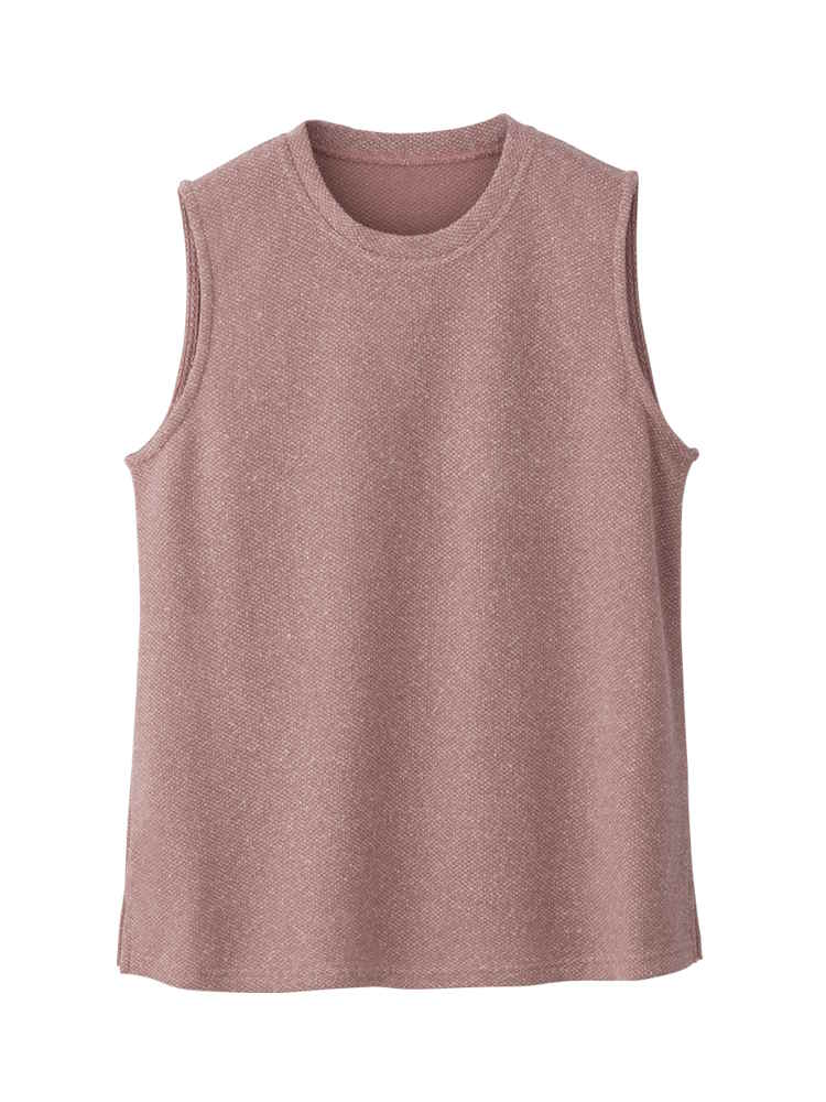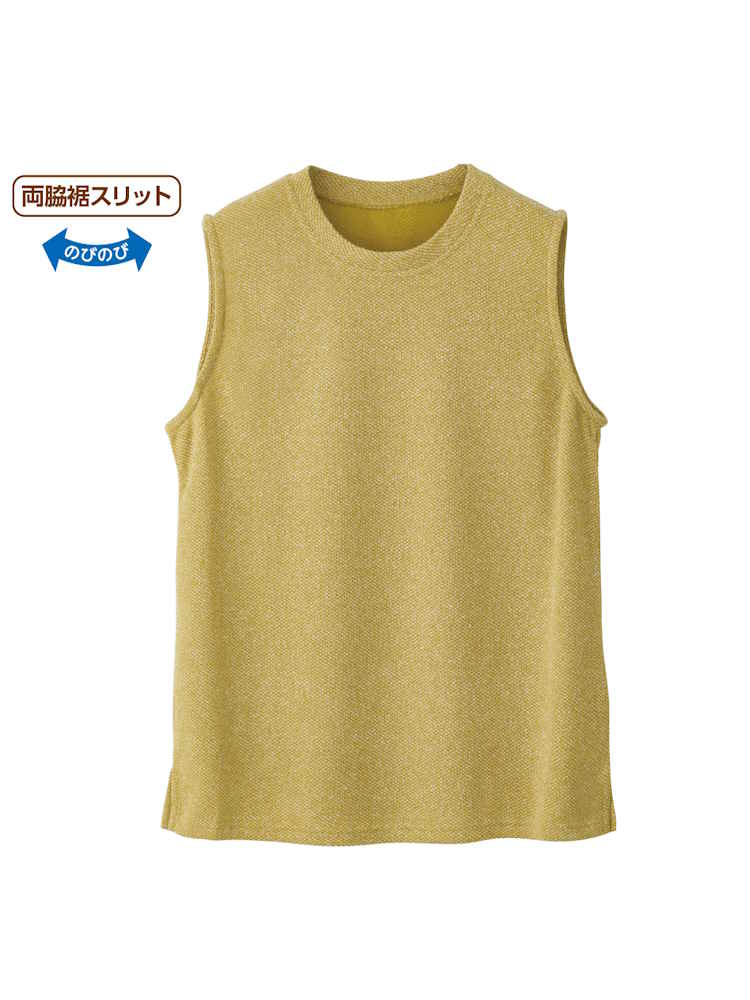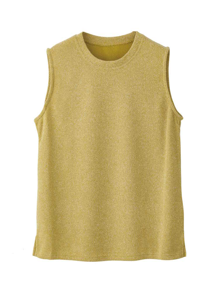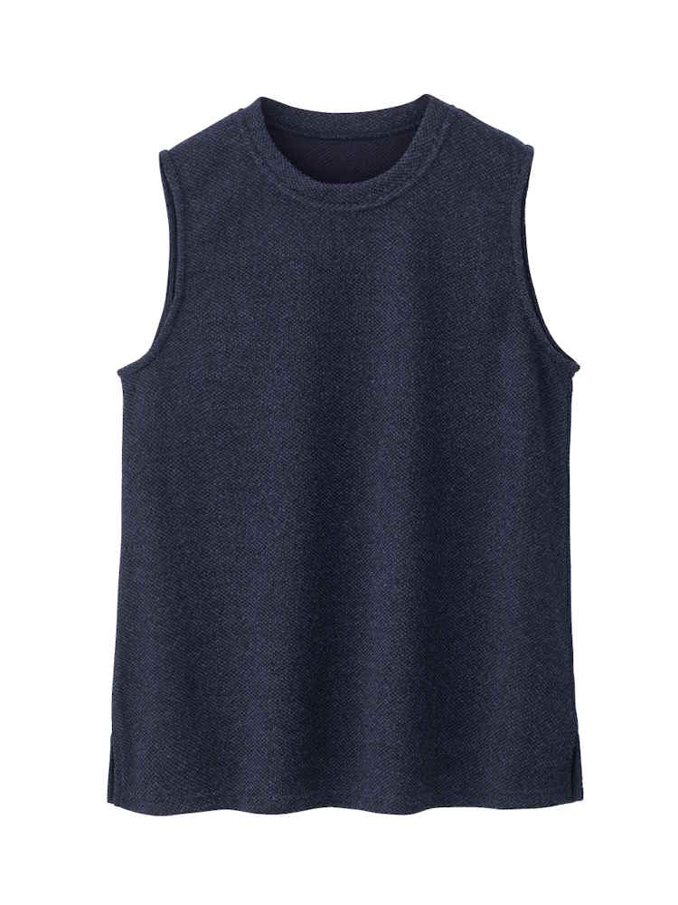 両脇裾スリッドデザインが特徴のこのノースリーブベストは、動きを妨げることなく、体を包み込むような柔らかいフィット感。