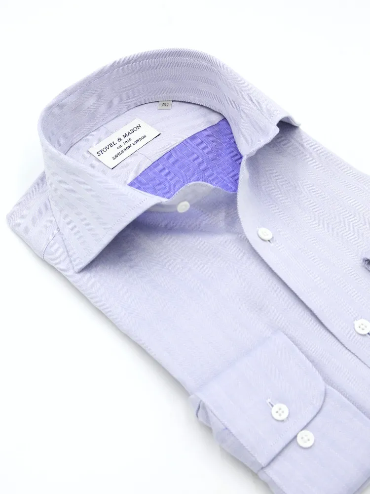 【綿×キュプラ】長袖ワイシャツ ワイドカラー キュプラ繊維ベンベルグR素材使用 織柄無地 へリンボン STOVEL&MASON 通年