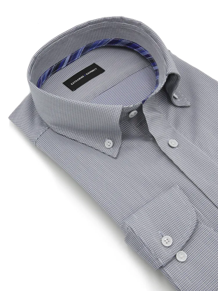 【KATHARINE E HAMNETT-キャサリン・イー・ハムネット-】長袖 ワイシャツ ボタンダウン 千鳥柄 リサイクル素材使用 通年