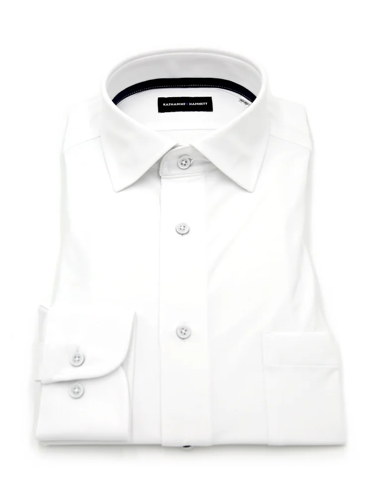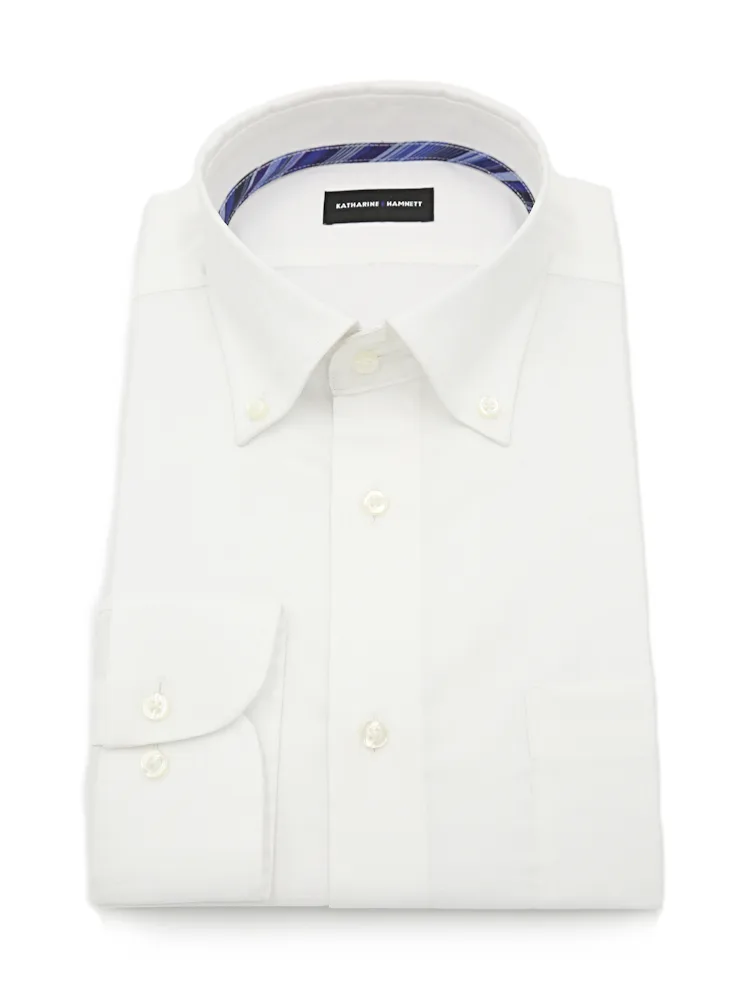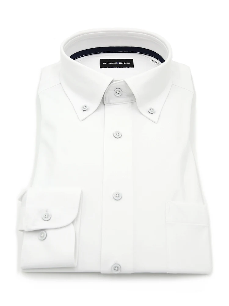 【KATHARINEEHAMNETT-キャサリン・イー・ハムネット-】長袖ワイシャツボタンダウン360°ストレッチ吸水速乾無地通年