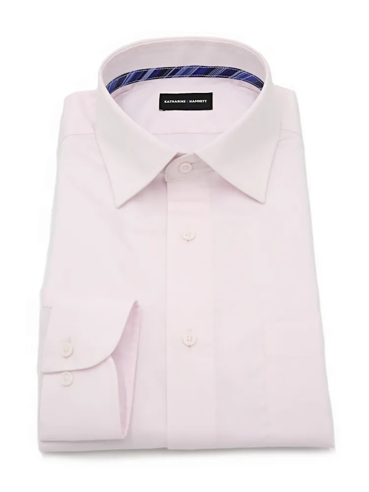 【KATHARINEEHAMNETT-キャサリン・イー・ハムネット-】長袖ワイシャツセミワイドピンクツイル柄リサイクル素材使用通年