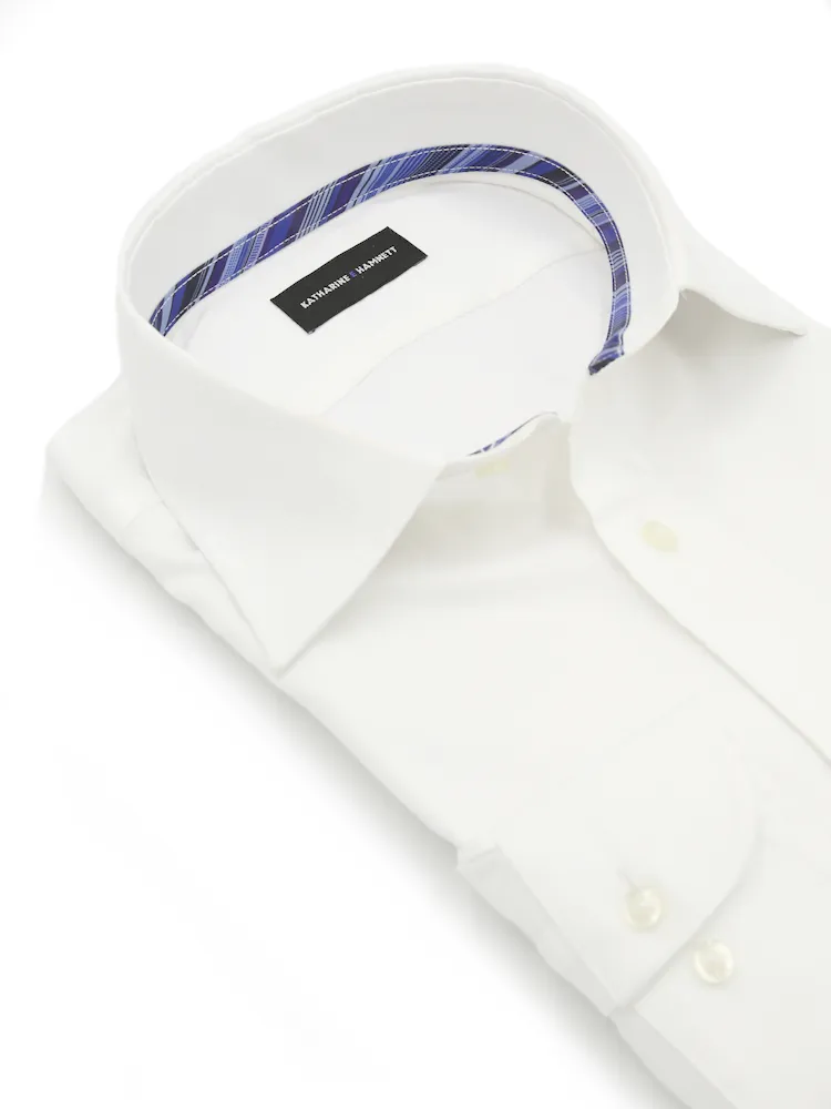 【KATHARINEEHAMNETT-キャサリン・イー・ハムネット-】長袖ワイシャツセミワイド白ドビー柄リサイクル素材使用通年