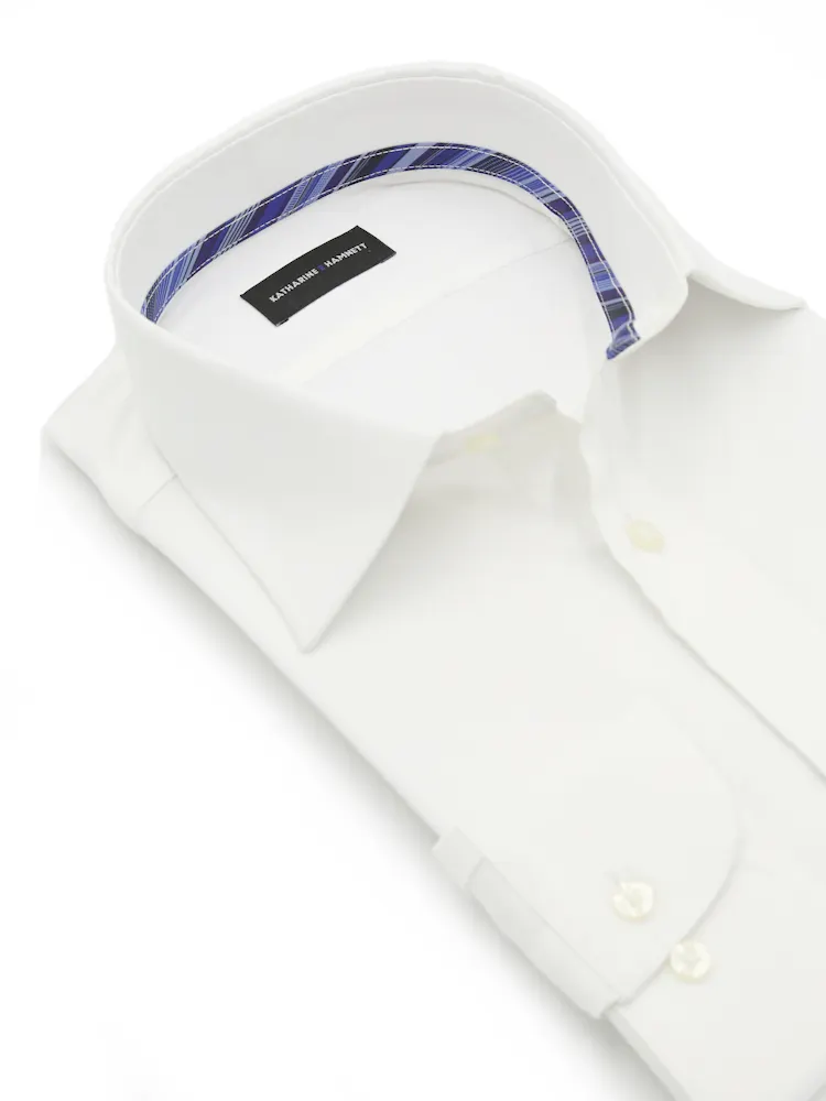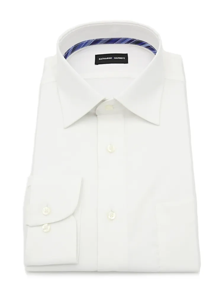 【KATHARINE E HAMNETT-キャサリン・イー・ハムネット-】長袖 ワイシャツ セミワイド 白ドビー柄 リサイクル素材使用 通年