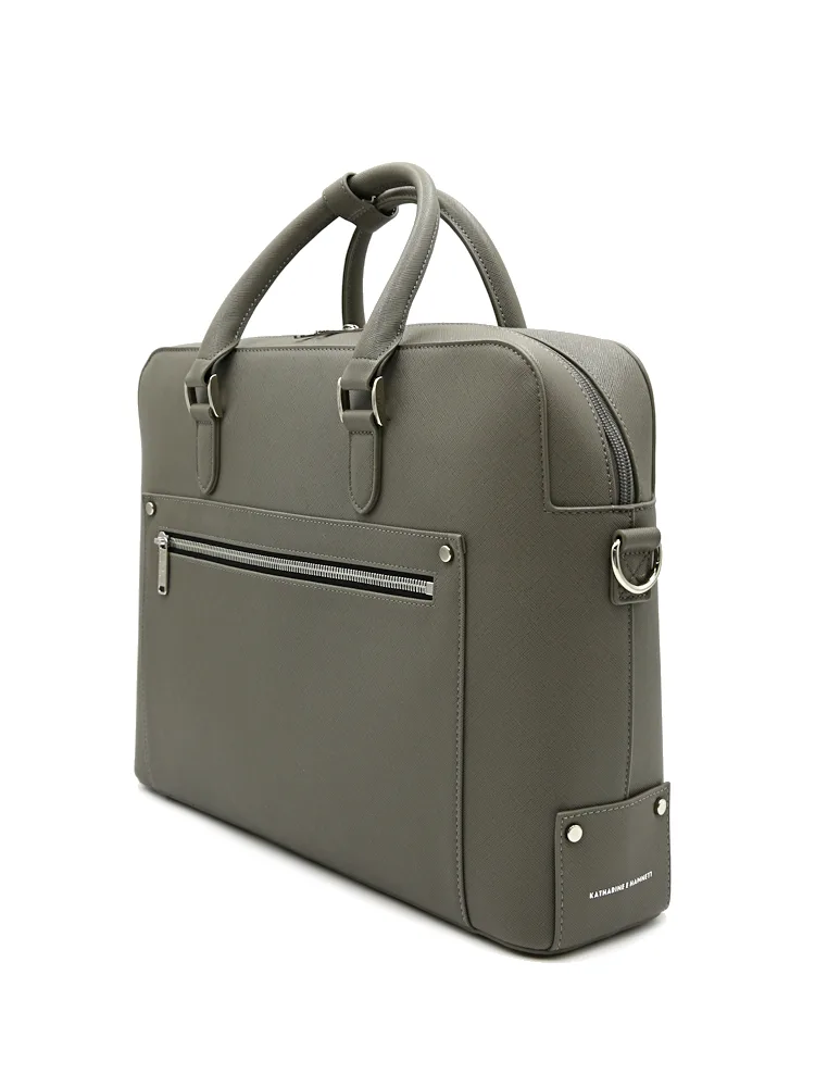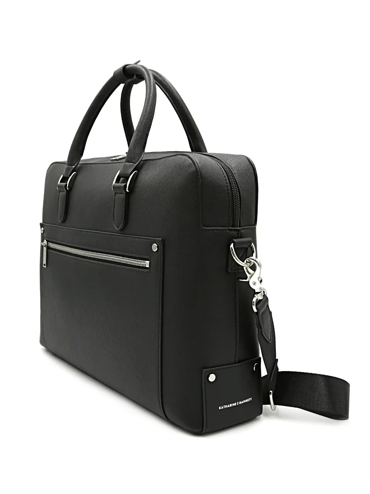 【KATHARINE E HAMNETT-キャサリン・イー・ハムネット-】サフィアーノ調 2WAY ブリーフバッグ ショルダーバッグ 通年(ブラック)