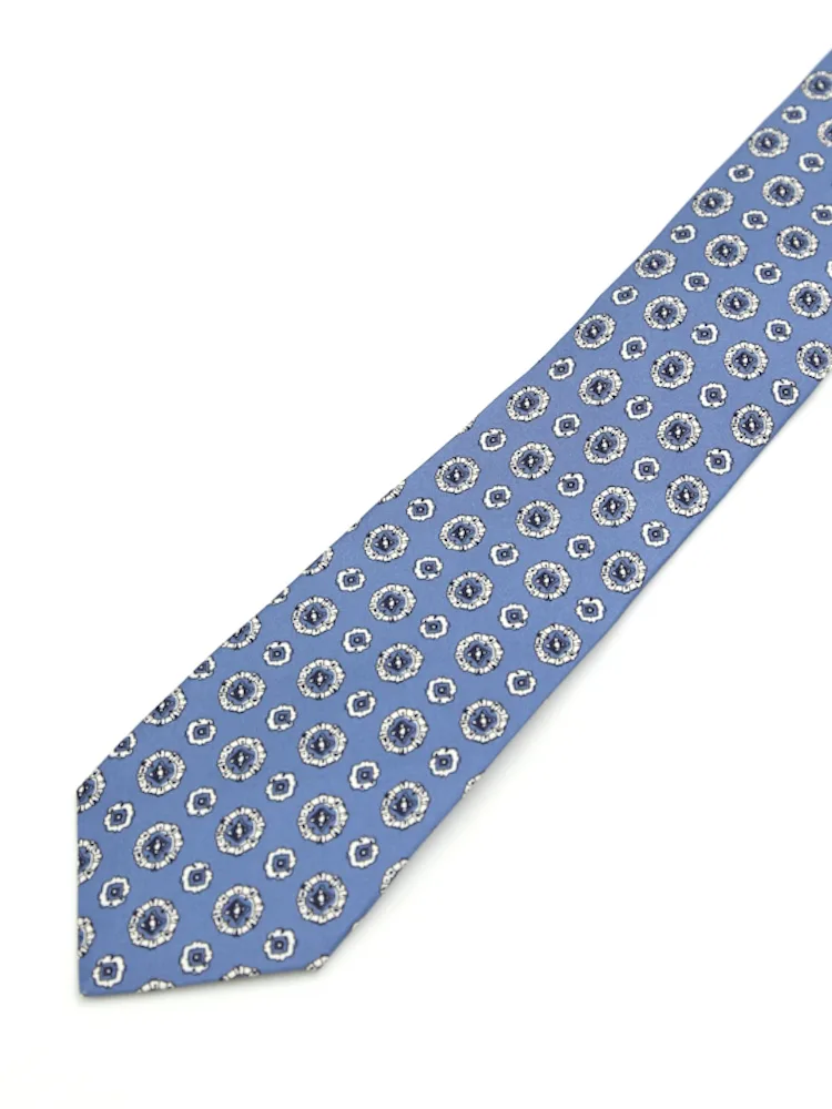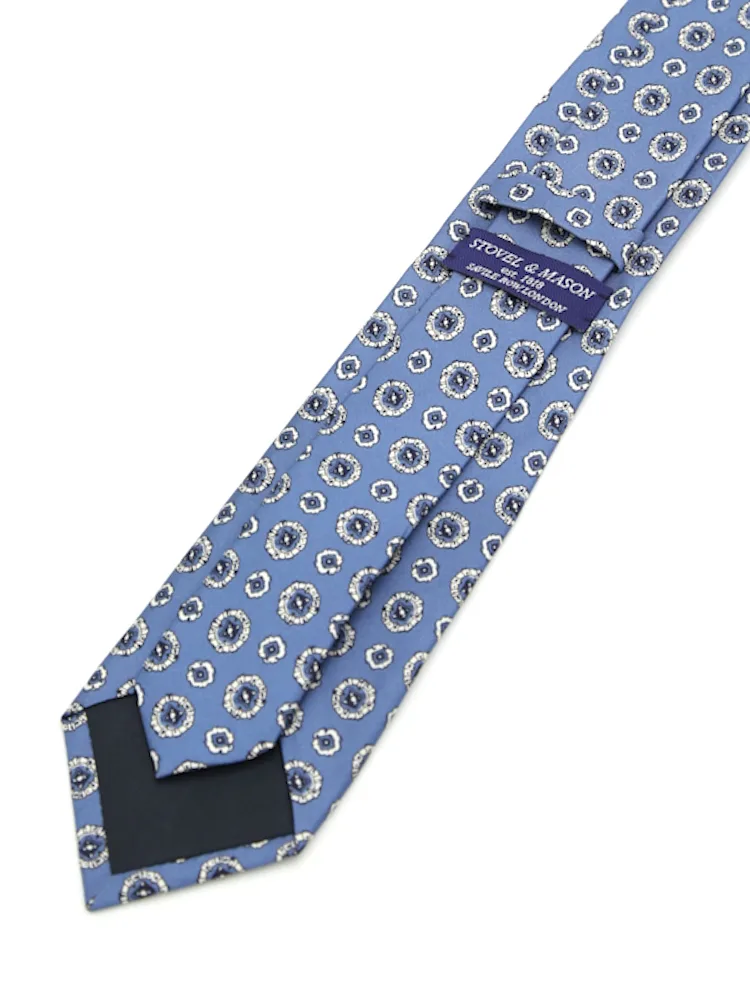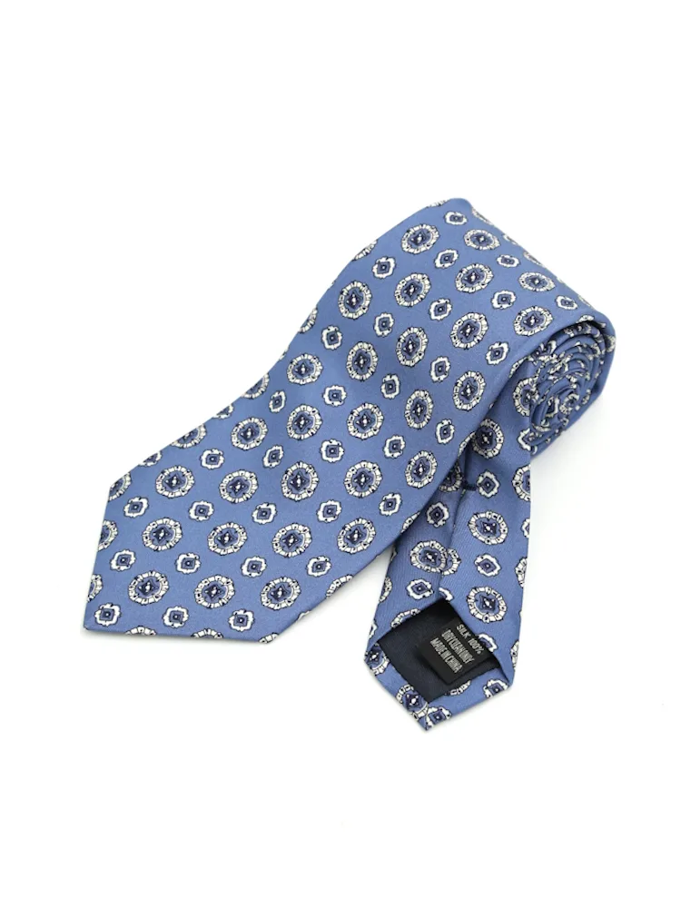 【シルク100%】ネクタイ レギュラー プリントタイ 小柄 S&M BLUE LABEL(ブルー)