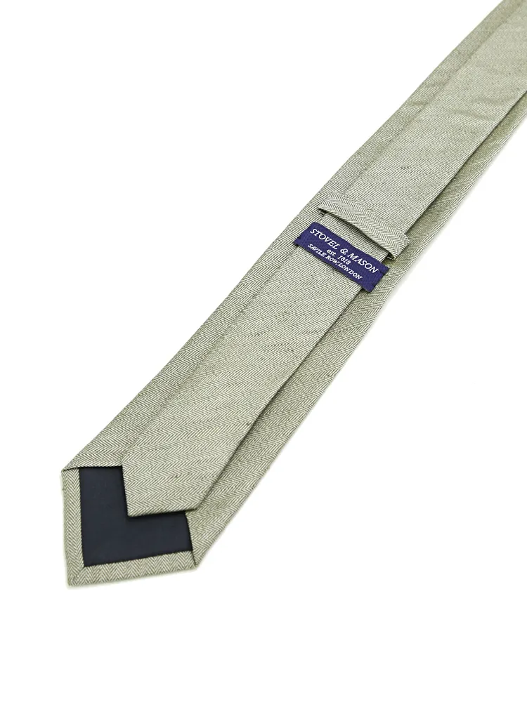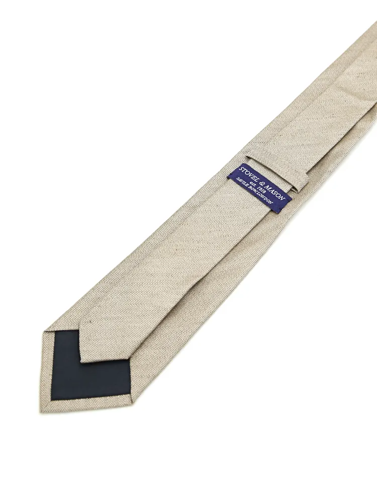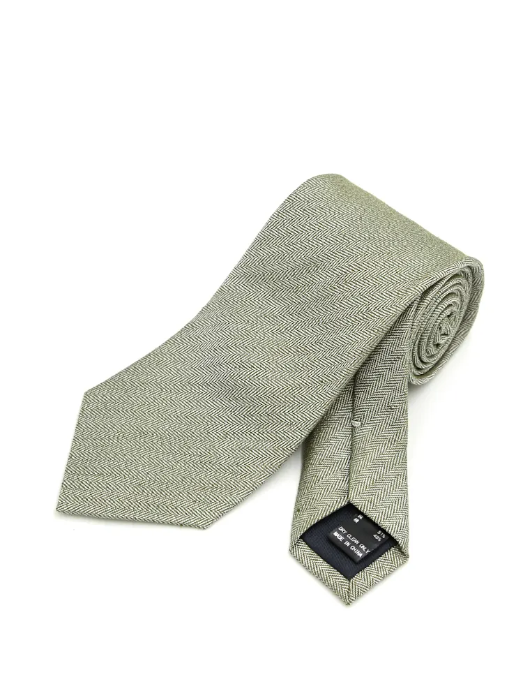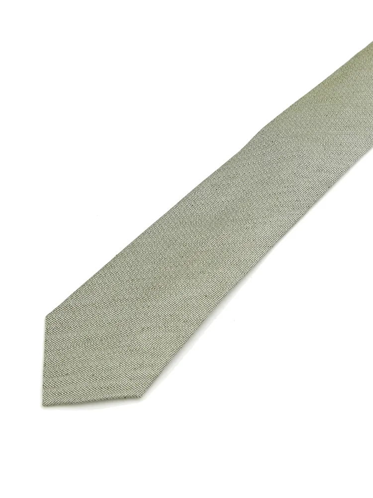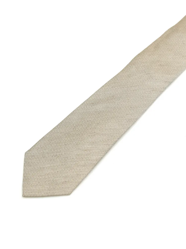 【シルクリネン】ネクタイ レギュラー ヘリンボン S&M BLUE LABEL 春夏(カーキー)