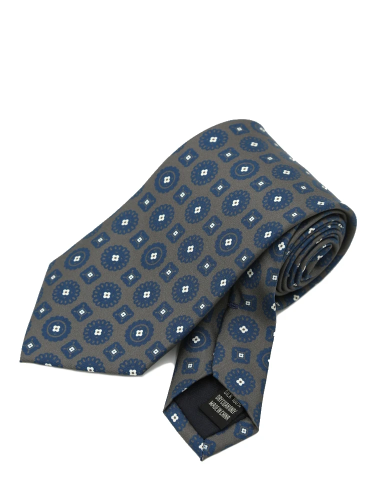 【シルク100%】ネクタイレギュラープリントタイ小柄S&MBLUELABEL