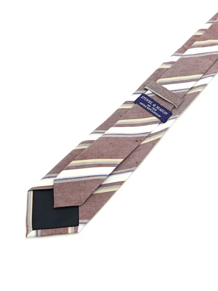 【シルクリネン】ネクタイ レギュラー ストライプ S&M BLUE LABEL 春夏(ワイン)
