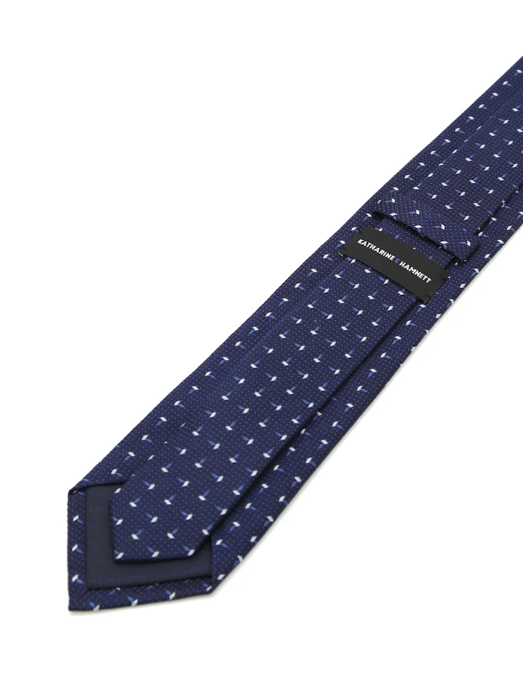 【KATHARINE E HAMNETT-キャサリン・イー・ハムネット-】レギュラーネクタイ マイクロパターン シルク100% 7.5cm巾(ネイビー)