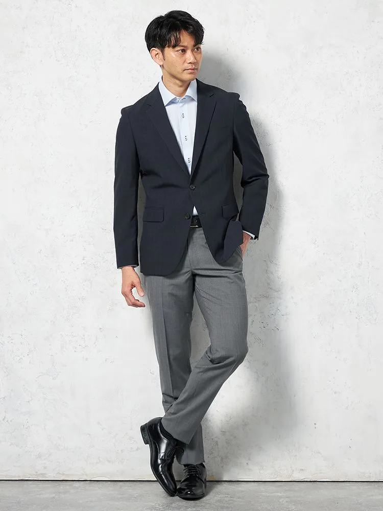 毎日のビジネススタイルにぴったり、お手入れ簡単で普段使いに便利なポリエステル100%素材のジャケットです。