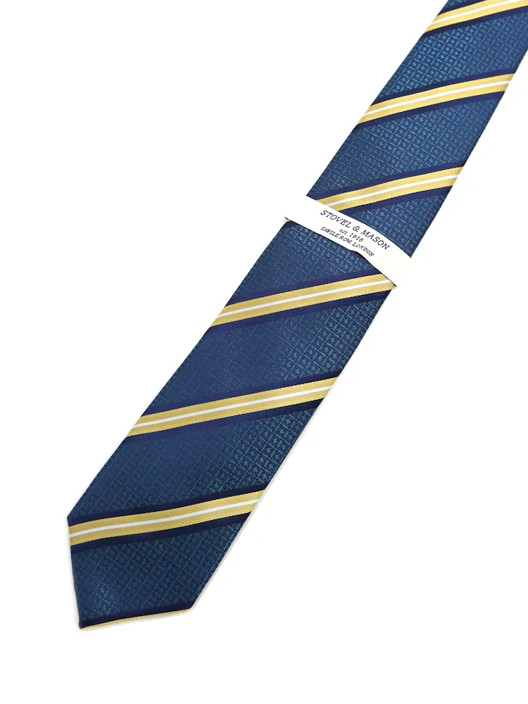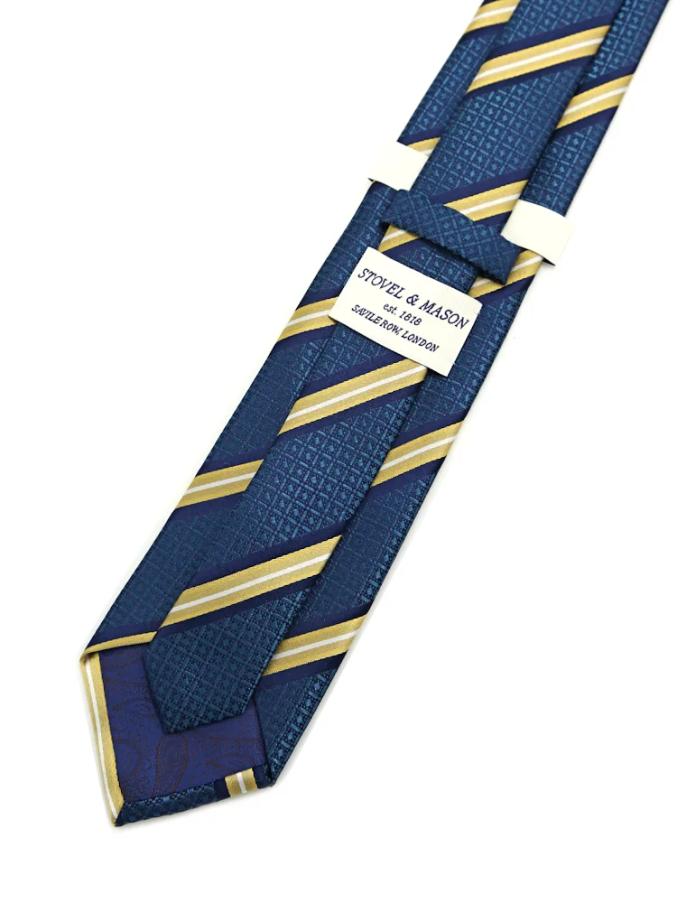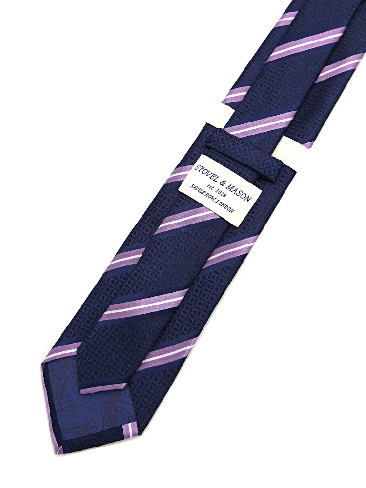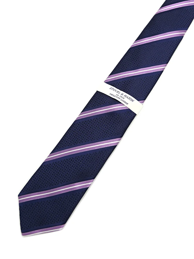 【シルク100%】ネクタイ レギュラー 日本縫製 ストライプ S&M(ネイビー)