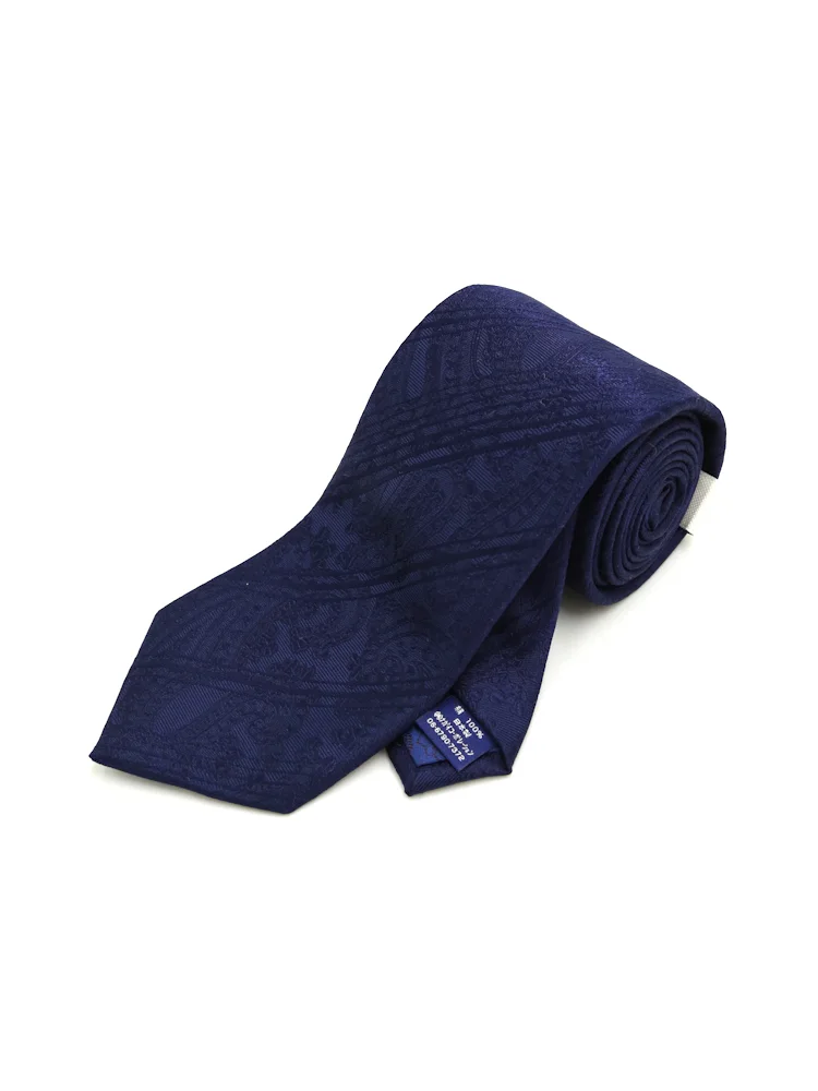【シルク100%】ネクタイ レギュラー 日本縫製 織柄 S&M(ネイビー)