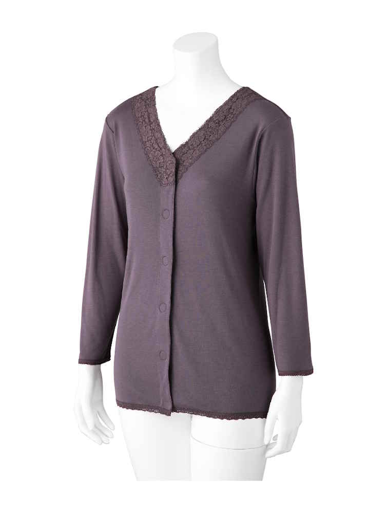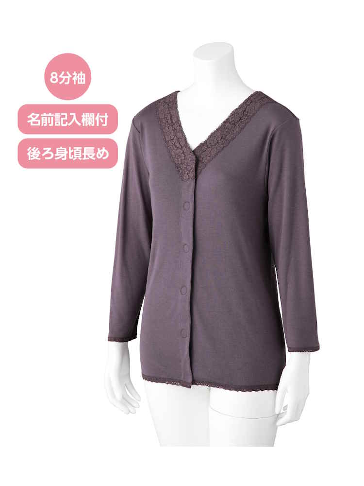 【前開き】【あったか】8分袖発熱ワンタッチシャツ/婦人用/レディース/高齢者/シニア/V首/秋冬用/名前記入欄付/洗濯機OK 【CF】(ピンク系)