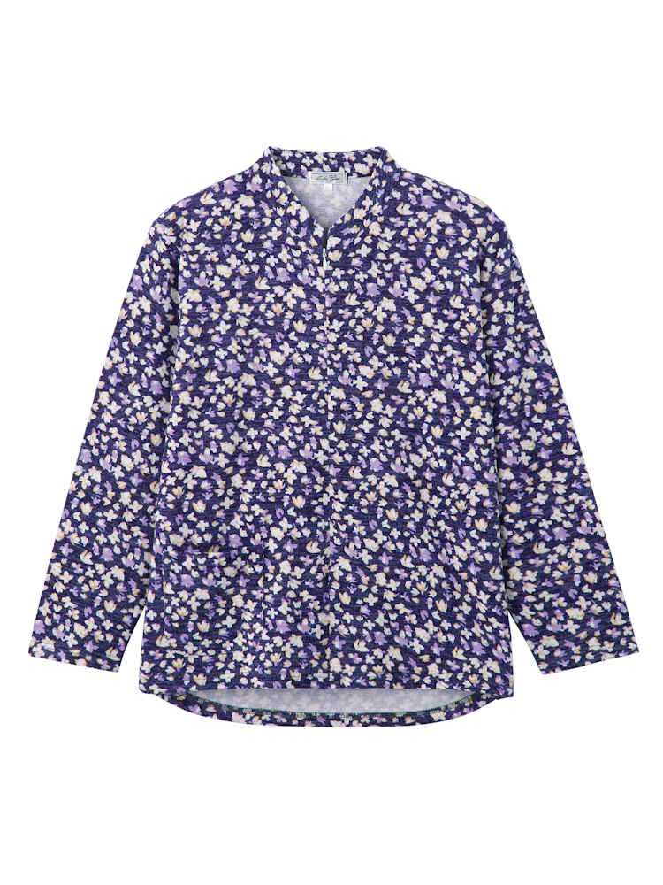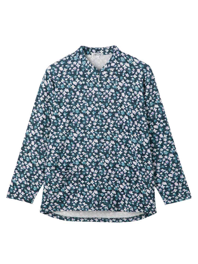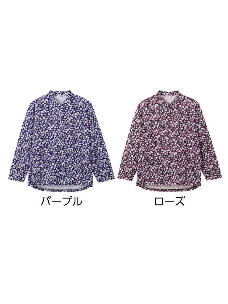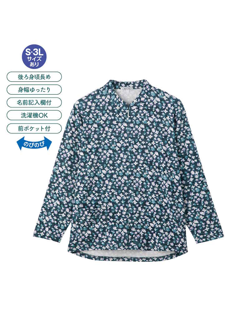 【前開き】【秋冬】ロングファスナーTシャツ13/婦人用/レディース/高齢者/シニア/ゆったり/のびのび/洗濯機OK/後ろ長め/名前記入欄付/ギフト/プレゼント 【CF】(ブルー)