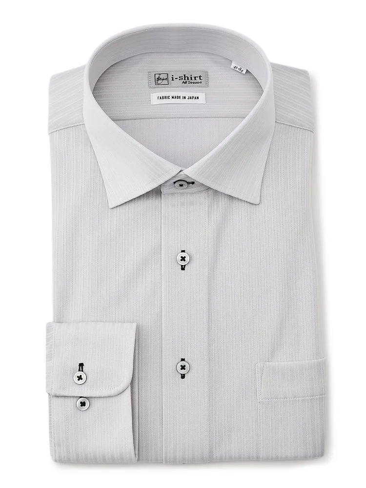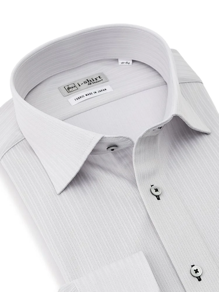【形態安定】アイシャツ長袖ワイシャツワイド織柄無地i-shirt通年