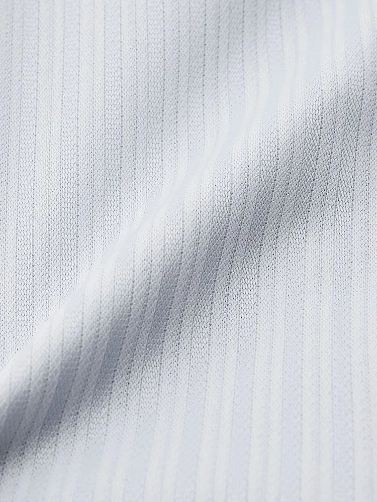 こだわりの日本製生地はソフトなポリエステルニットで、スポーツウェア等にも使われる高機能素材。体の動きに合わせて生地が伸び縮みする高いストレッチ性が特徴で、動作時の負荷が少なく着用ストレスも軽減します。