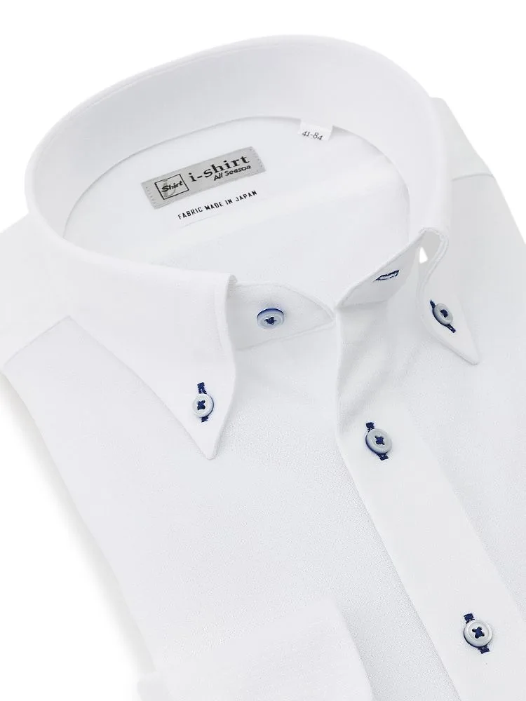 【完全ノーアイロン】長袖アイシャツボタンダウン吸水速乾ストレッチダイヤ織柄無地ワイシャツi-shirt通年