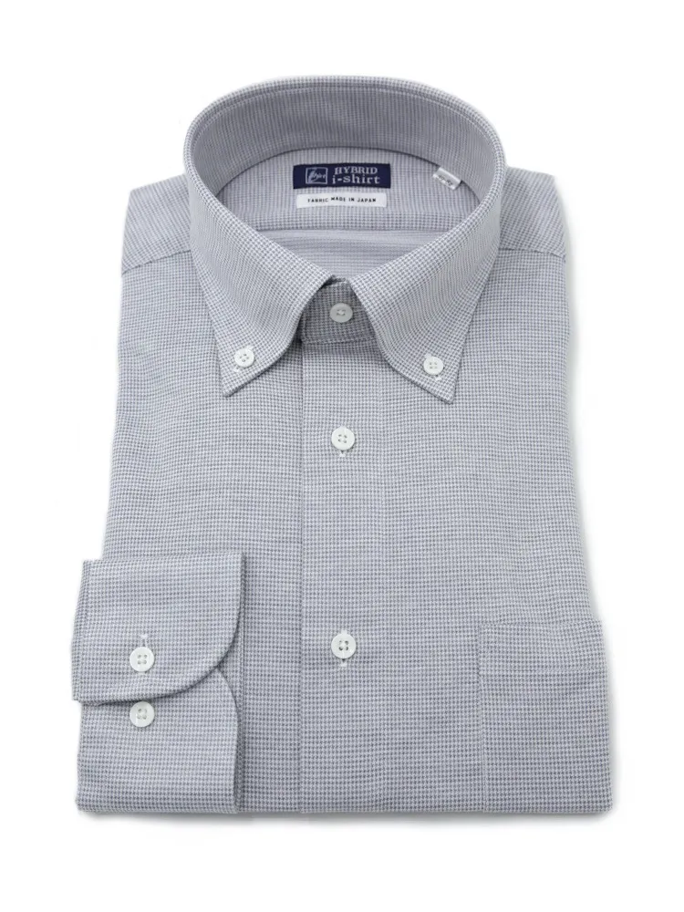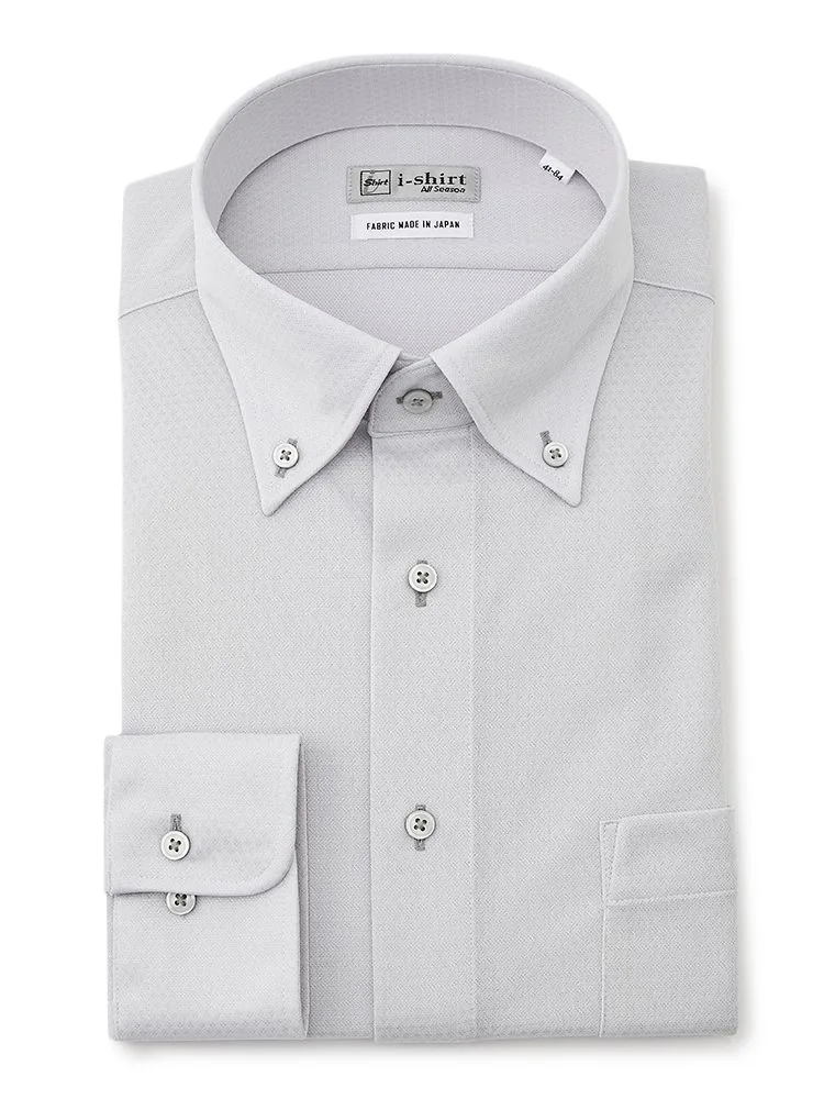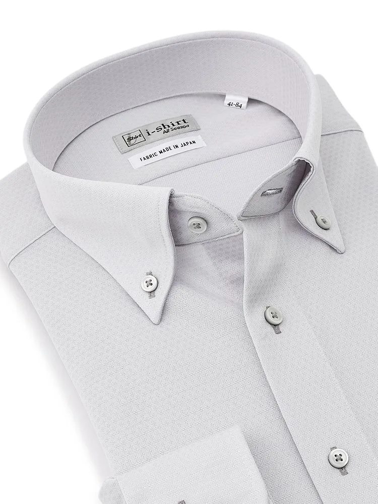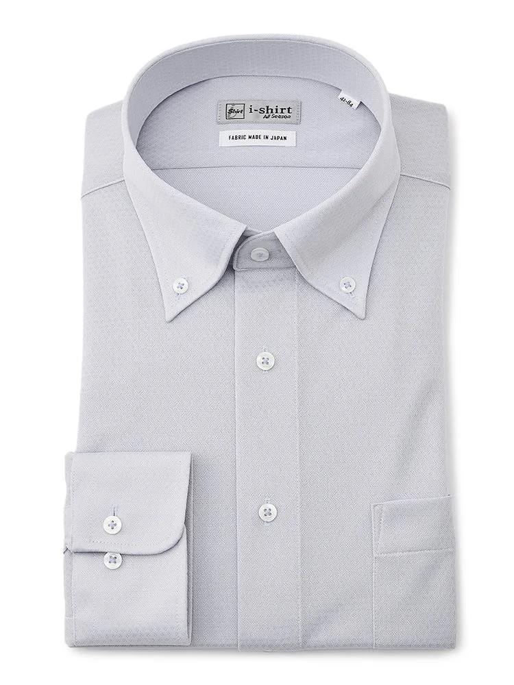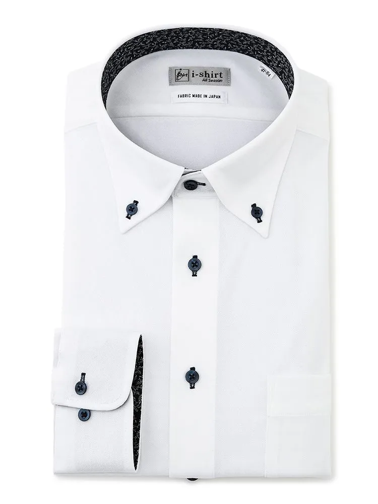 【形態安定】アイシャツ長袖ワイシャツボタンダウン織柄無地i-shirt通年