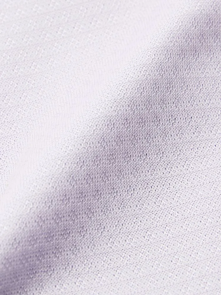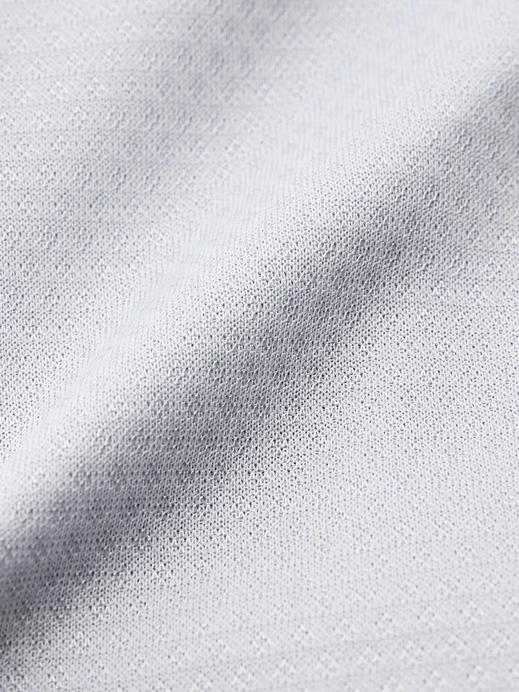 こだわりの日本製生地はソフトなポリエステルニットで、スポーツウェア等にも使われる高機能素材。体の動きに合わせて生地が伸び縮みする高いストレッチ性が特徴で、動作時の負荷が少なく着用ストレスも軽減します。