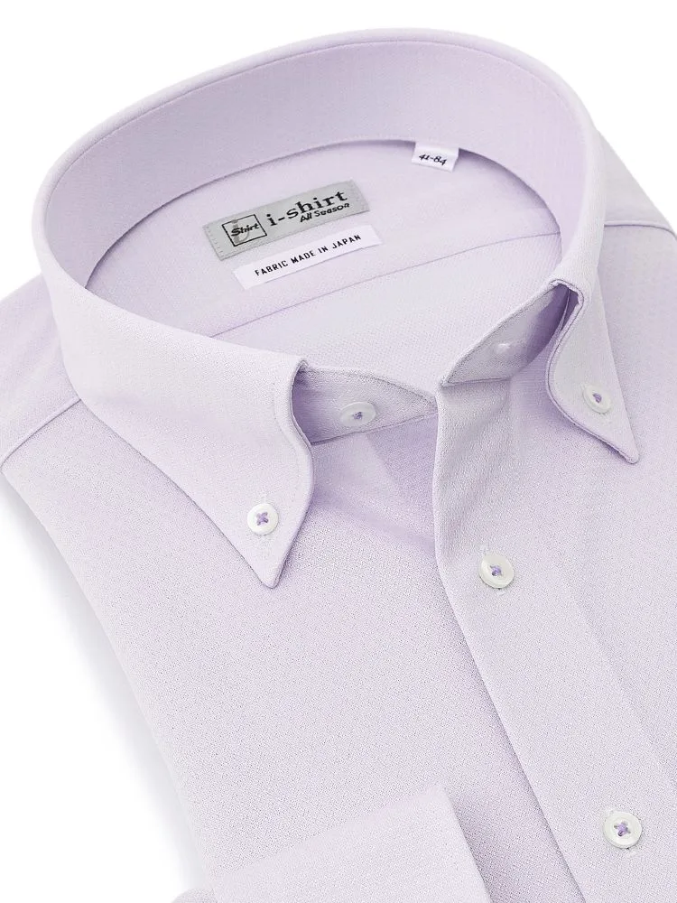 【形態安定】アイシャツ 長袖ワイシャツ ボタンダウン 織柄無地 i-shirt 通年(ラベンダー)
