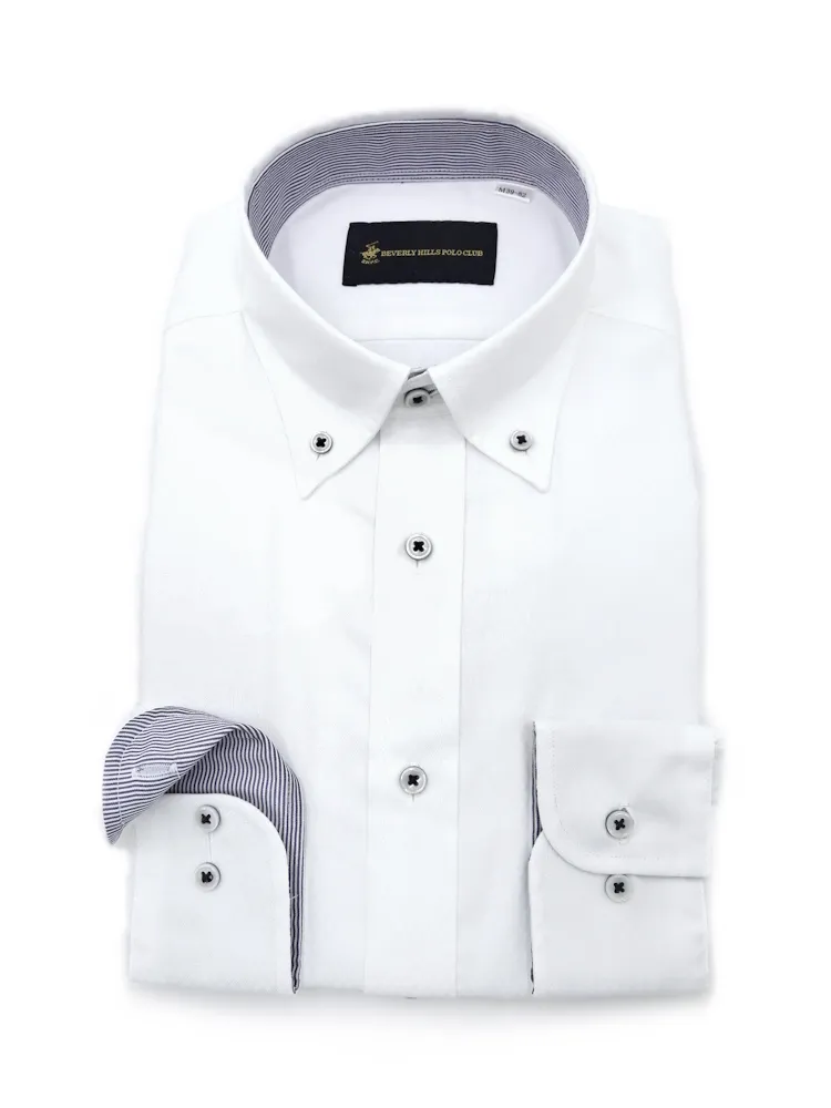 【形態安定】長袖ワイシャツボタンダウン白ドビー織柄無地ハントレークラブ通年