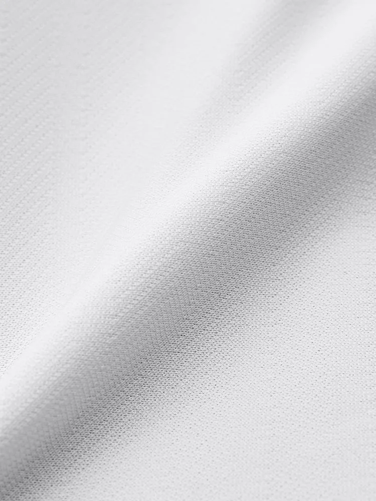 こだわりの日本製生地はソフトなポリエステルニットで、スポーツウェア等にも使われる高機能素材。体の動きに合わせて生地が伸び縮みする高いストレッチ性が特徴で、動作時の負荷が少なく着用ストレスも軽減します。