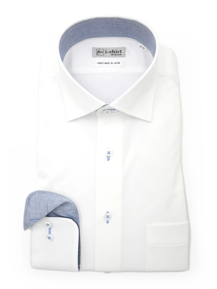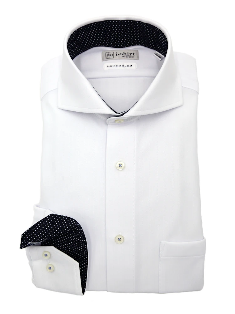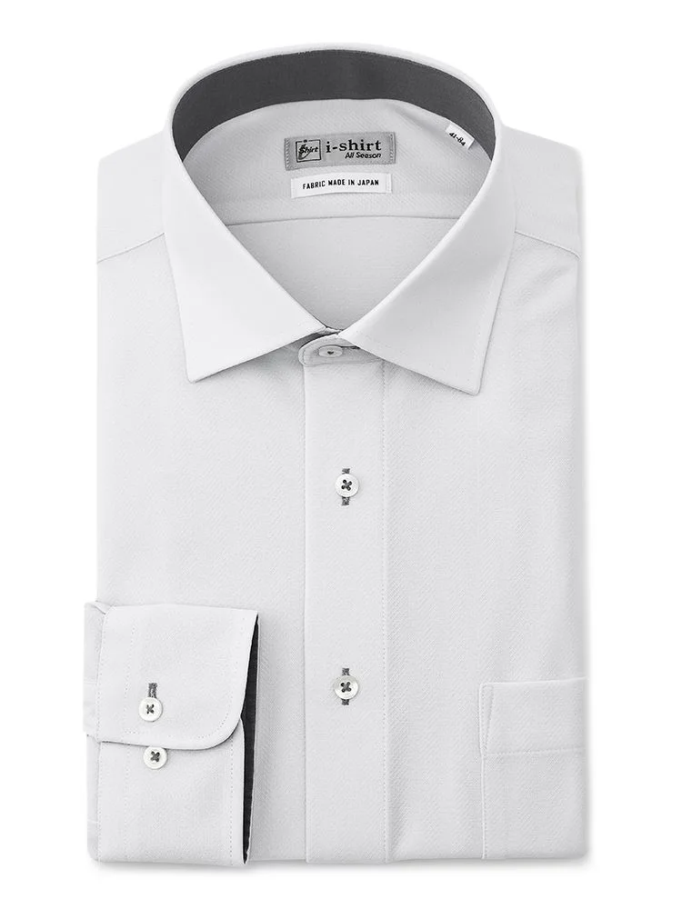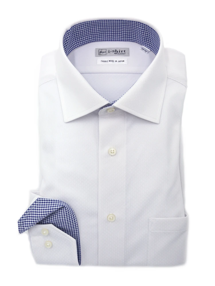 【ハイブリッドアイシャツ】長袖ワイシャツセミワイド綿混素材形態安定織柄無地i-shirt通年