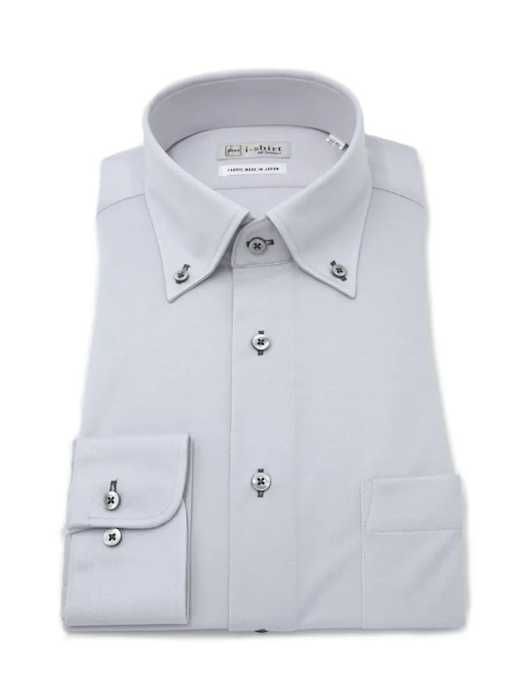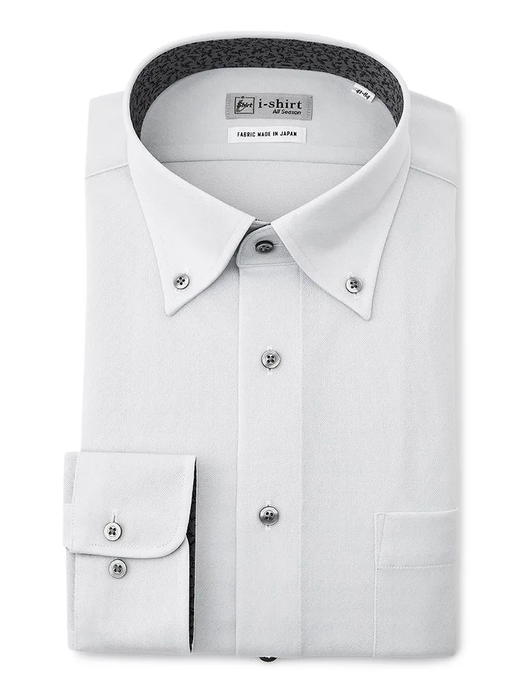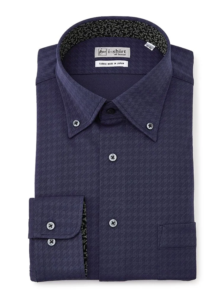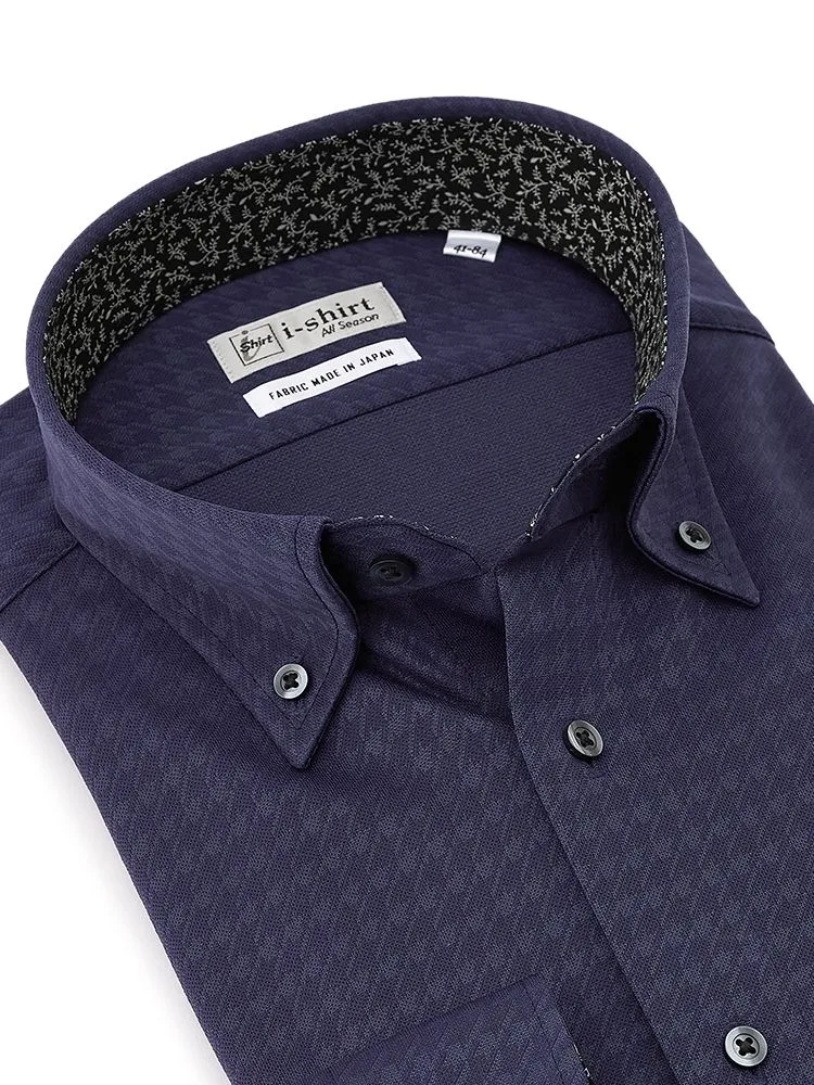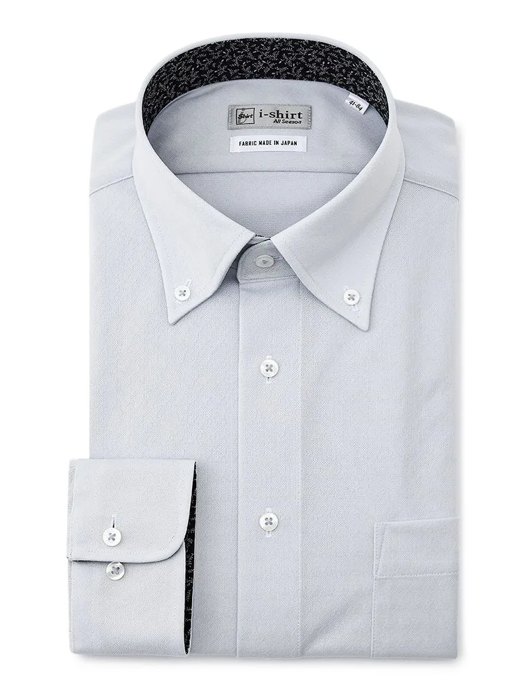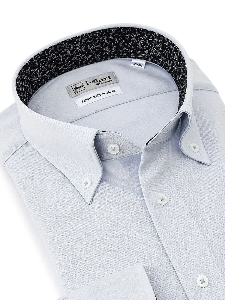 【形態安定】アイシャツ長袖ワイシャツボタンダウン織柄無地i-shirt通年