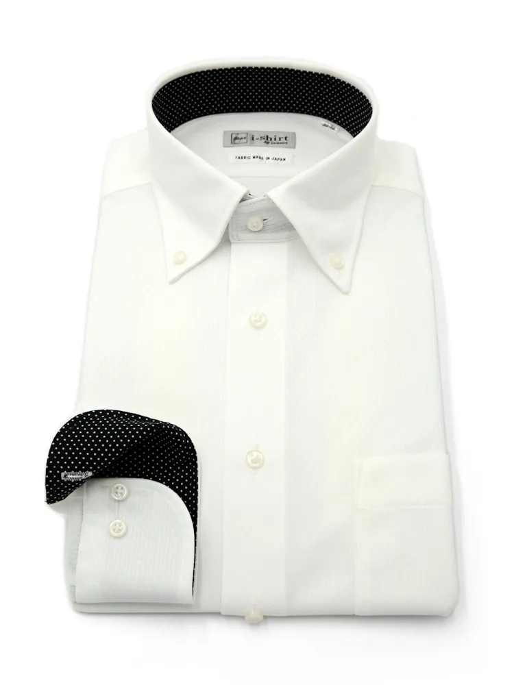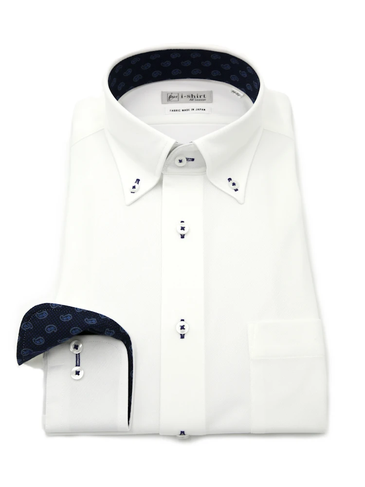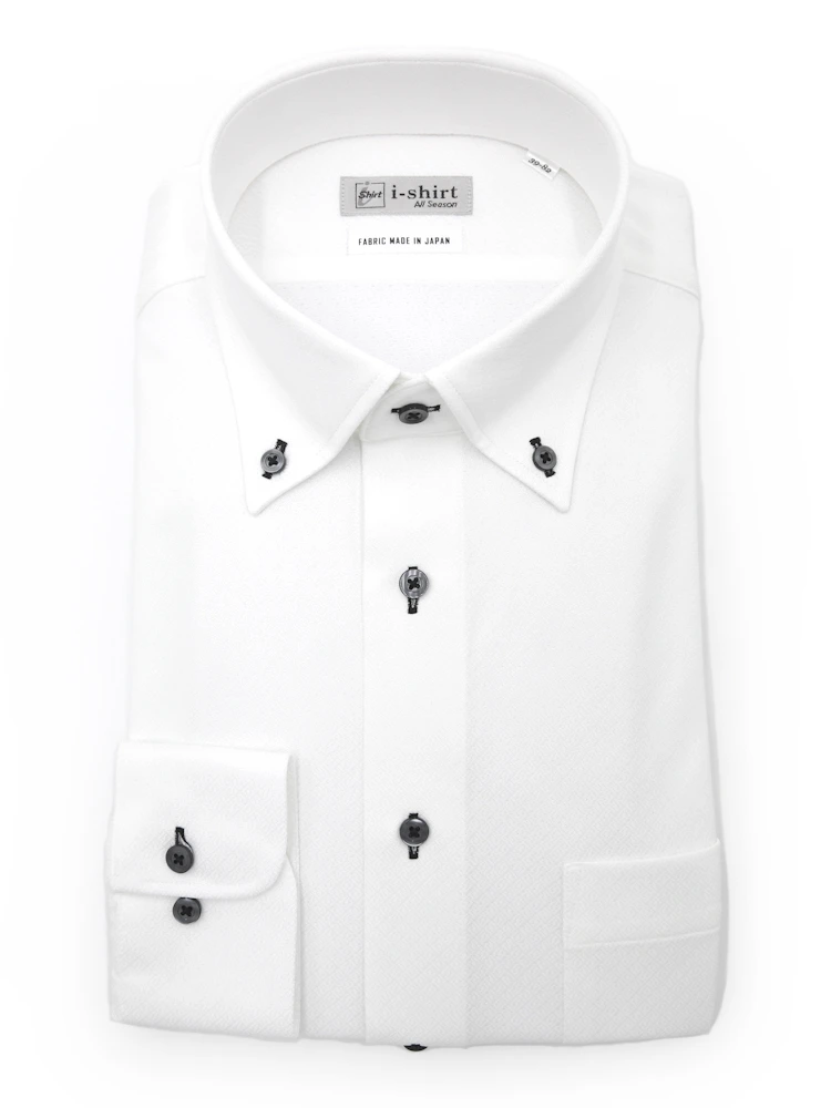 【形態安定】アイシャツ 長袖ワイシャツ ボタンダウン 織柄無地 i-shirt 通年(ホワイト)
