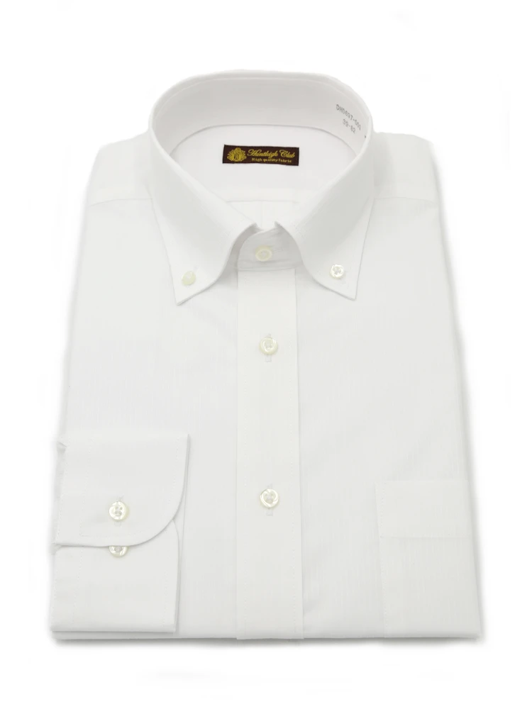 【形態安定】長袖ワイシャツボタンダウン白ドビー織柄無地ハントレークラブ通年