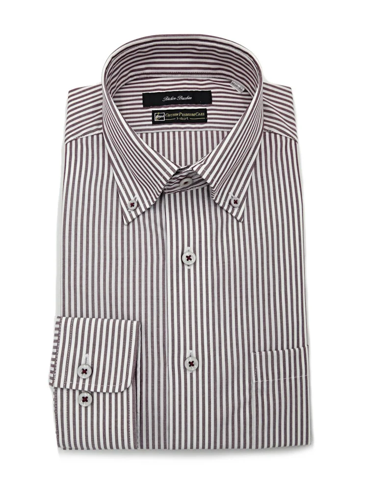 【形態安定】長袖ワイシャツボタンダウン【コットンプレミアムケア】ストライプリッケンバッカー通年