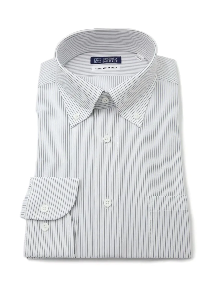 完全ノーアイロン機能付きで、忙しい朝でもシワを気にせずにそのまま着用できます。手間を省ける便利なアイテムです。