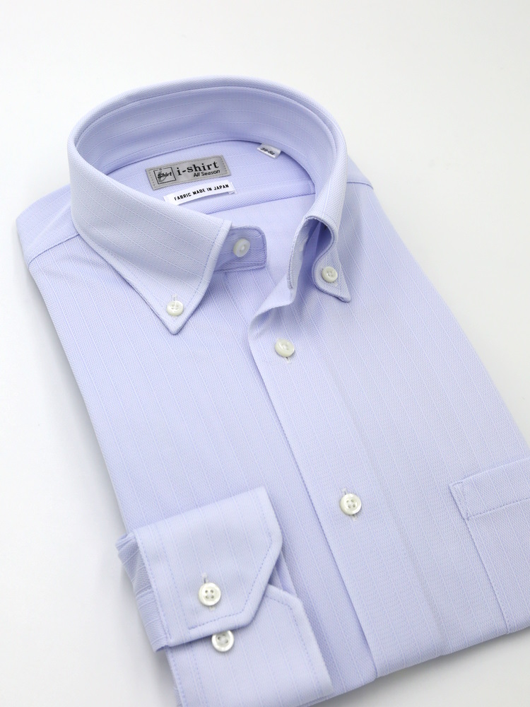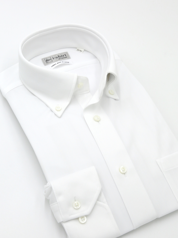 【形態安定】アイシャツ長袖ワイシャツボタンダウン織柄無地i-shirt通年