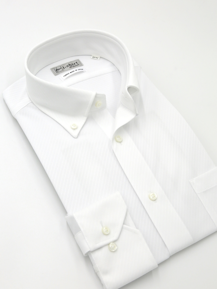 【即納】WEB限定【完全ノーアイロン】長袖 アイシャツ ボタンダウン ストレッチ ガルゼ柄 i-shirt 通年(ホワイト)