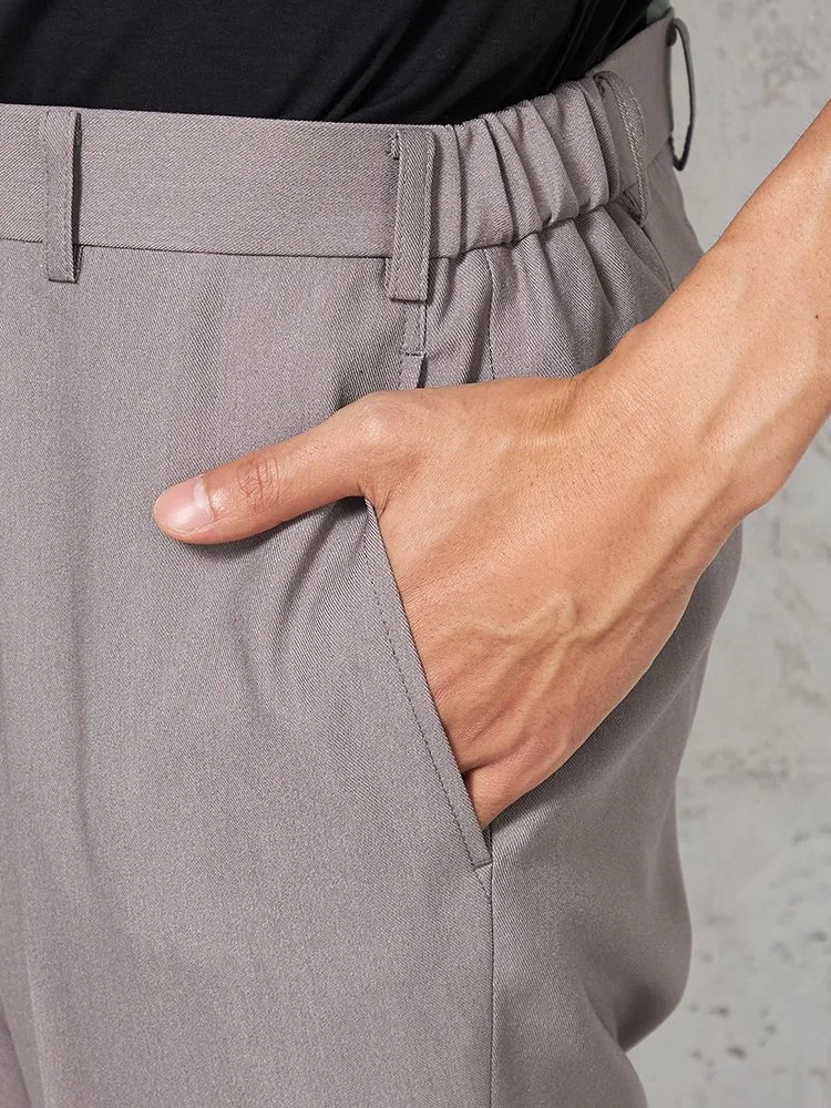 パンツの腰回りに生地の折り込みがなく、スッキリとしたシルエットを実現します。シンプルで洗練された印象を与え、すっきりとした着こなしが可能です。