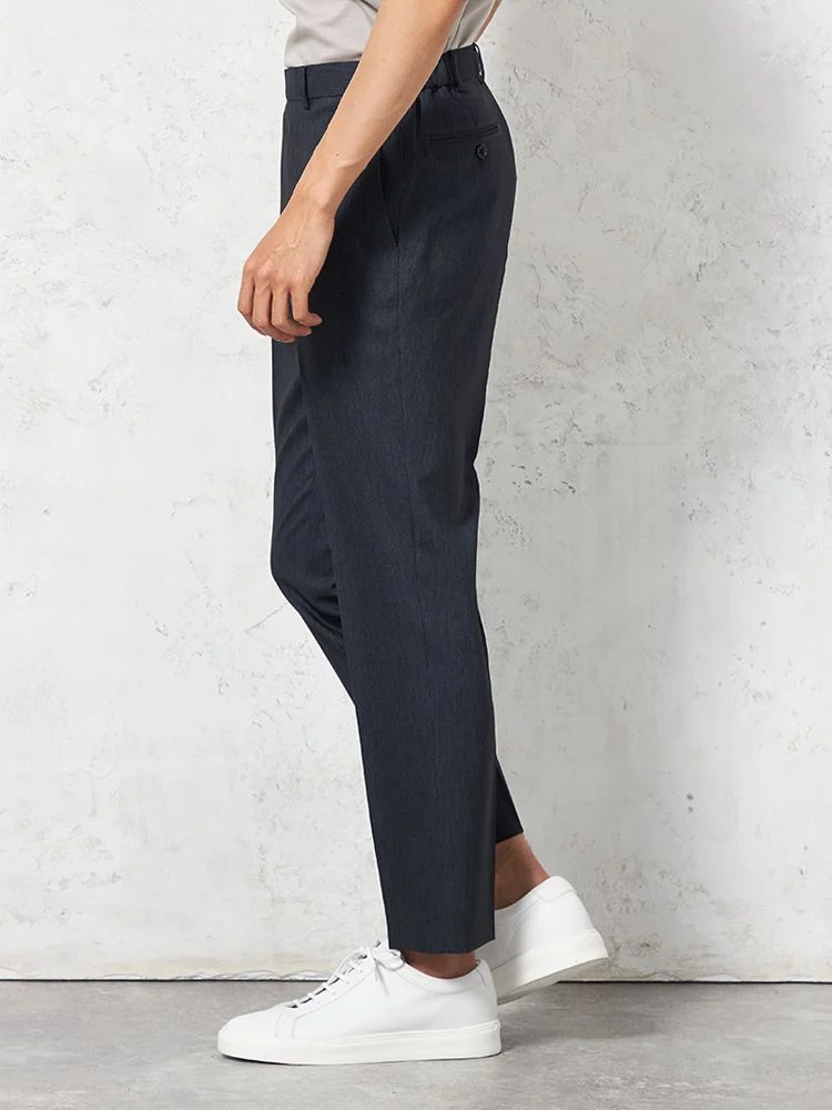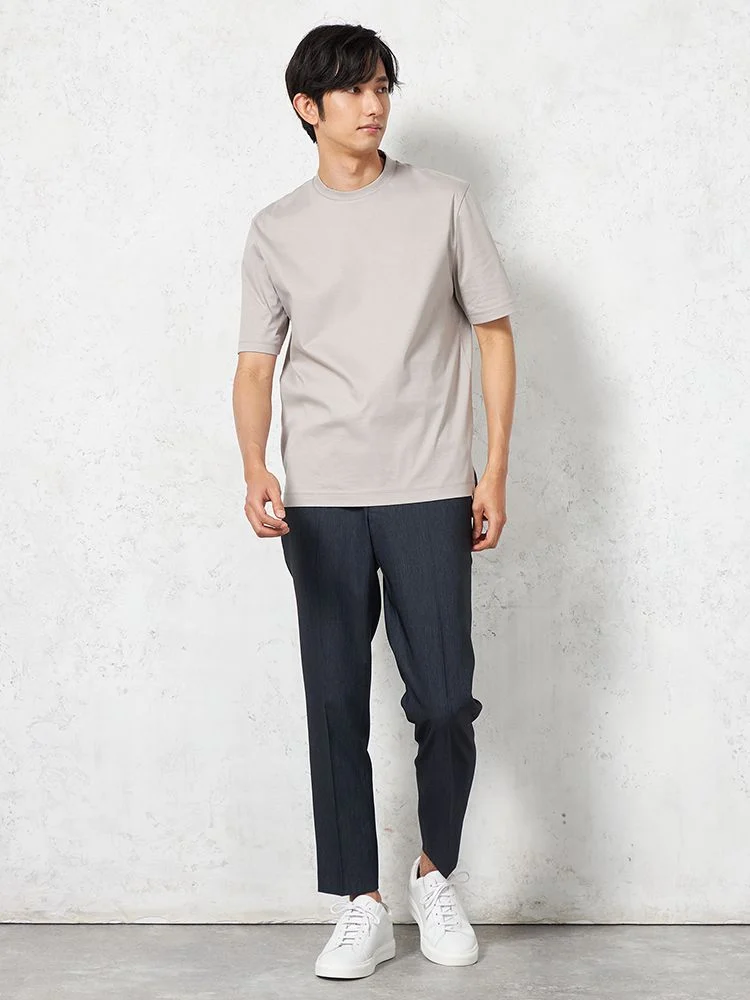 テーパードラインの裾巾が細い為、やや短めのアンクル丈での着用がお勧め。モダンなルックを叶えてくれる一本です。