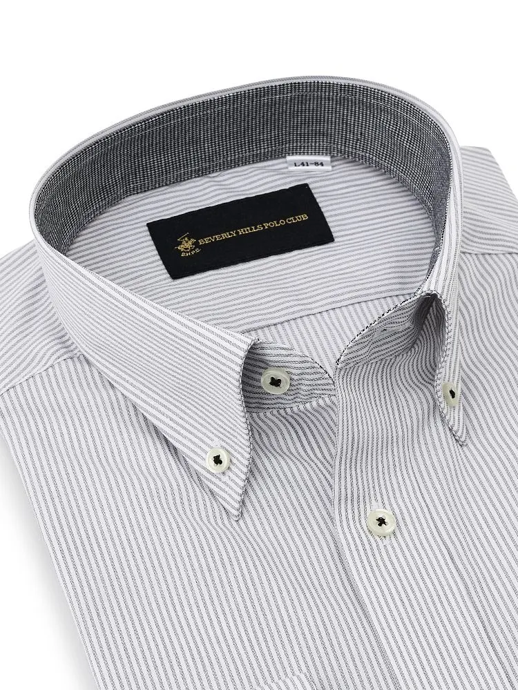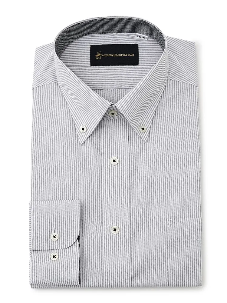 【形態安定】長袖ワイシャツボタンダウン別布ストライプビバリーヒルズポロクラブ通年