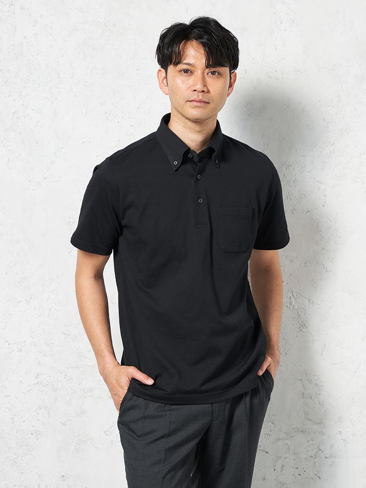 汎用性が高く着まわしのきく、無地の半袖ポロシャツです。